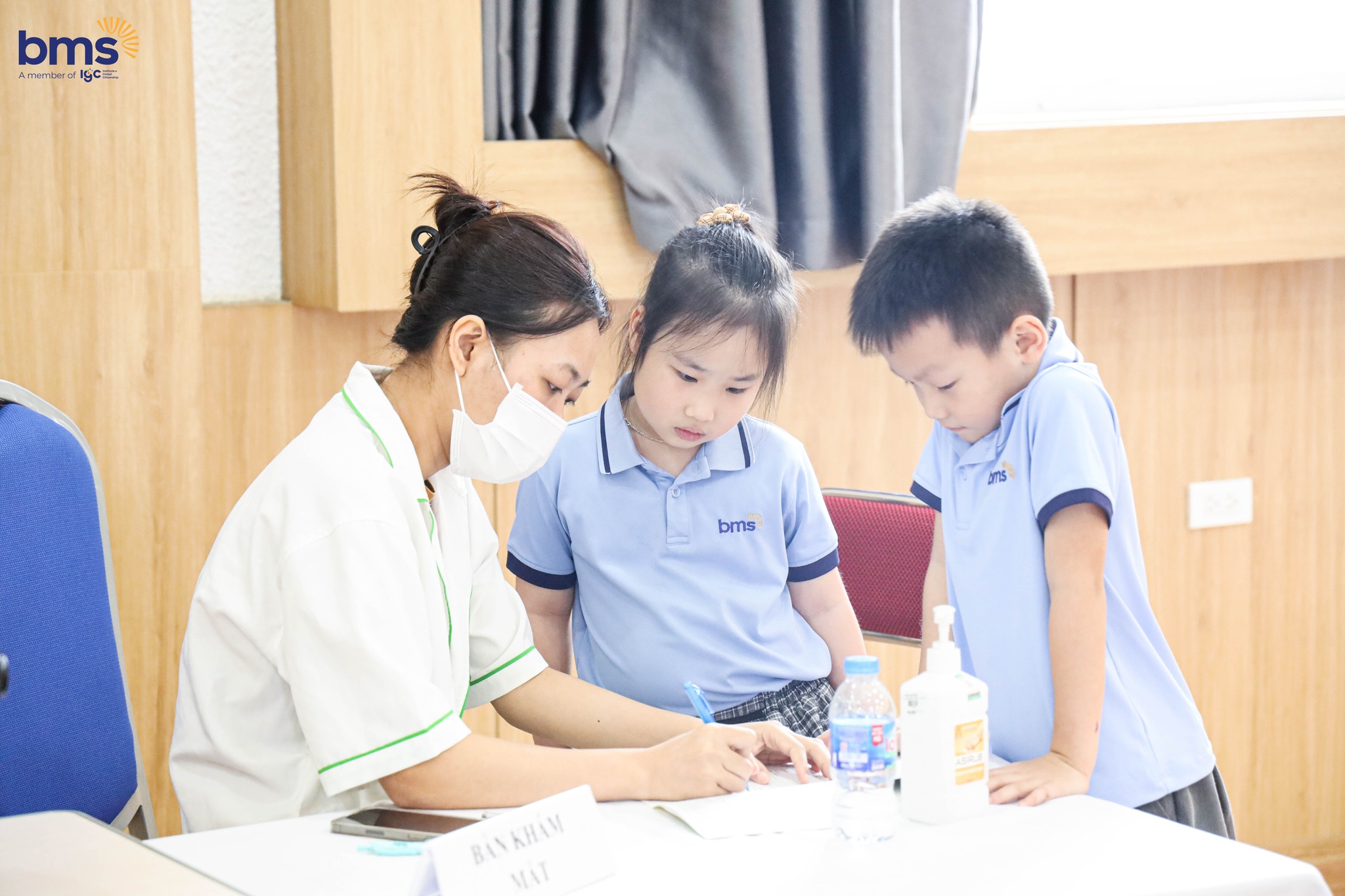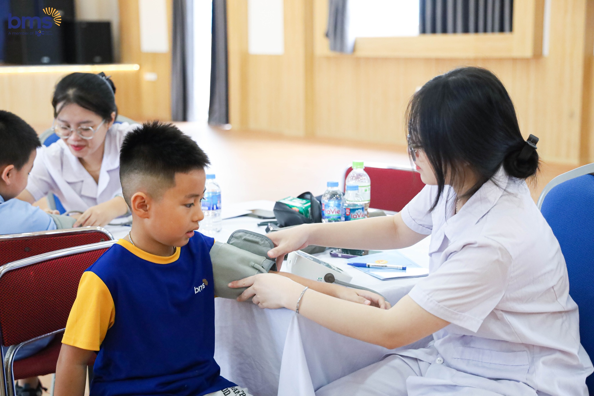 Học sinh được khám sức khỏe 01 lần/ năm. Kết quả khám gửi đến gia đình và lưu trữ tại phòng Y tế nhà trường. Cán bộ Y tế Nhà trường thực hiện kiểm tra sức khỏe sơ bộ cho học sinh mới bắt đầu vào trường học.