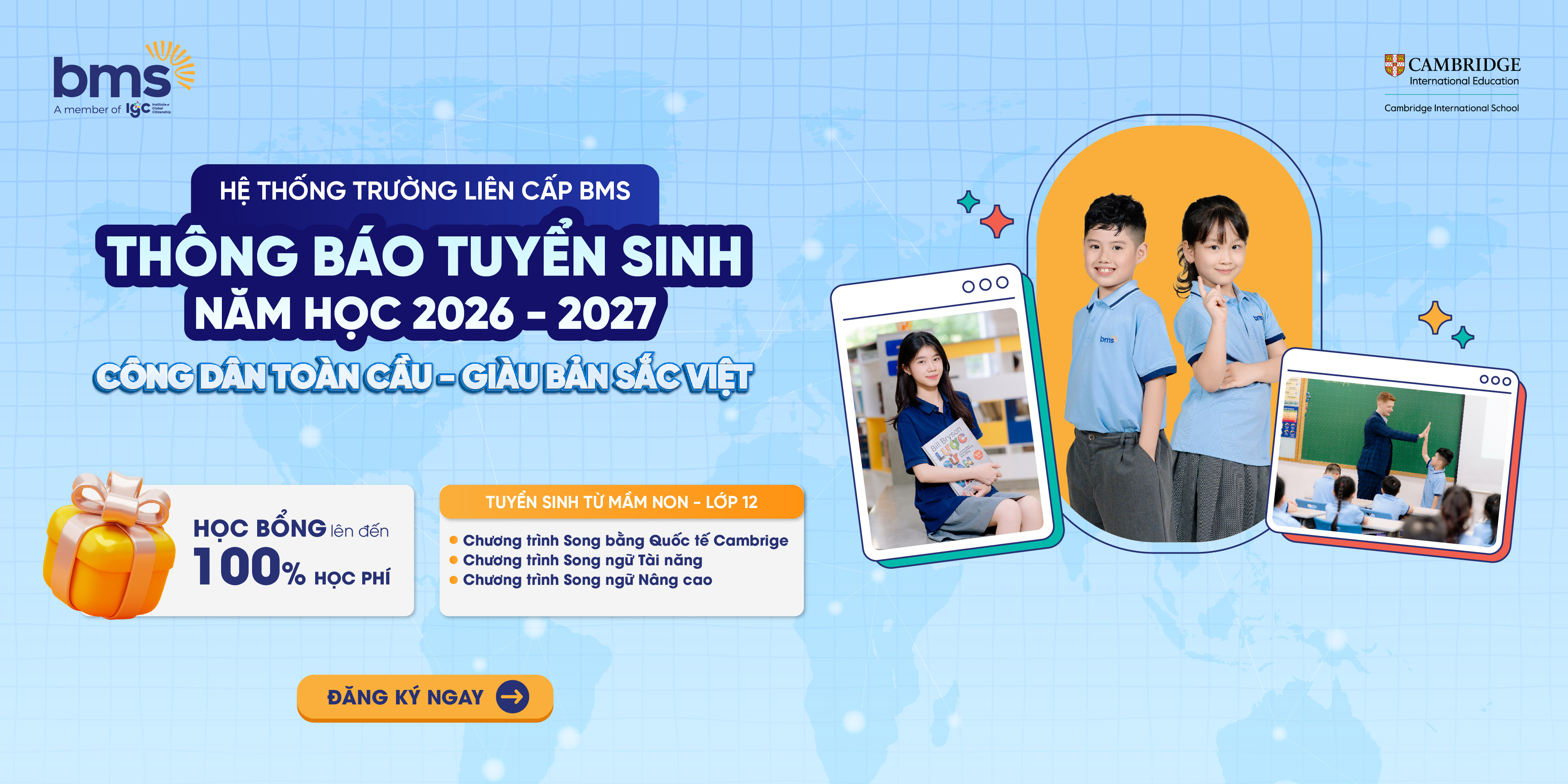 Hệ thống Trường liên cấp BMS chính thức công bố thông tin tuyển sinh năm học 2026 – 2027 từ 5 tuổi đến Lớp 12.