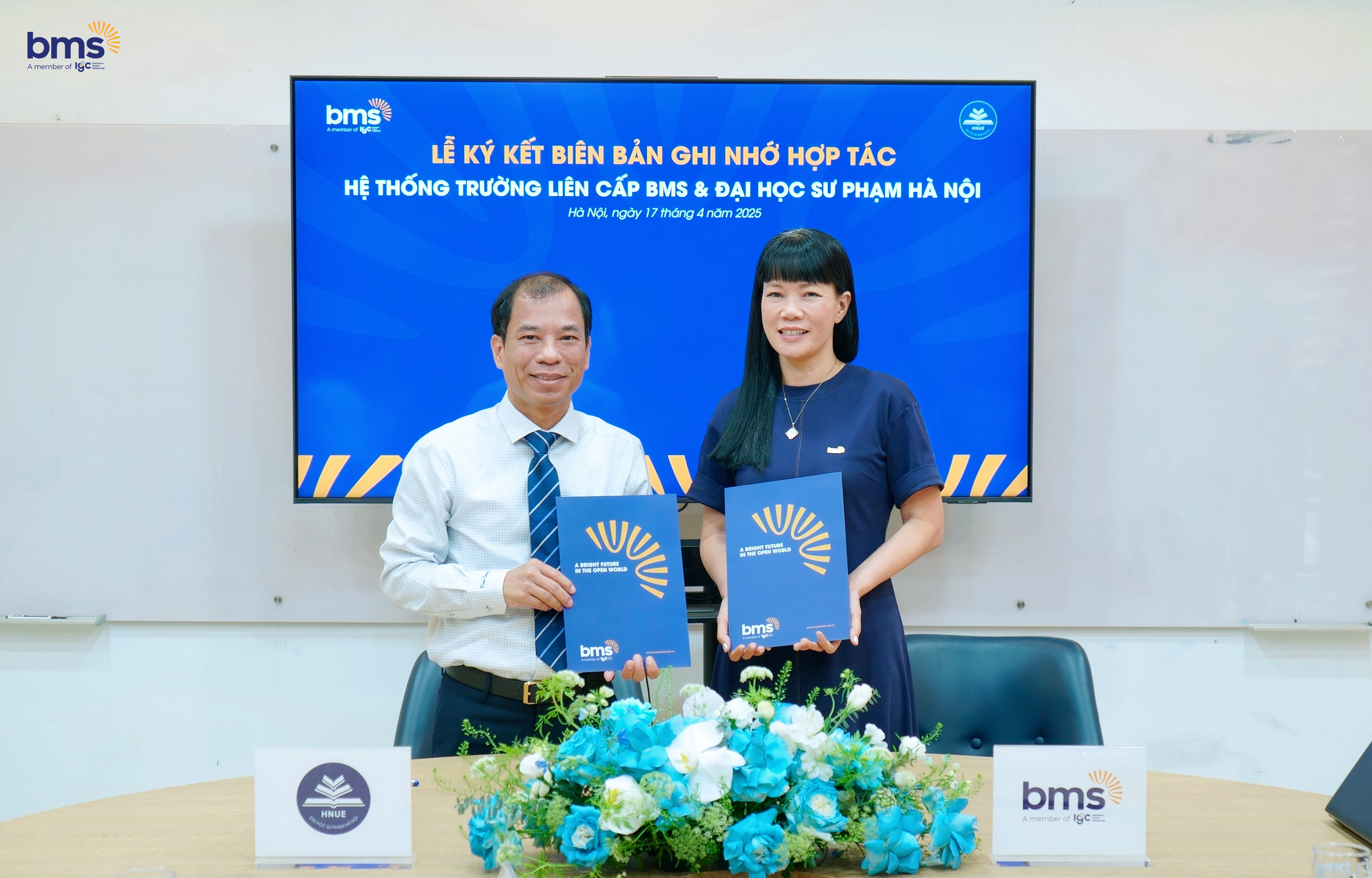 Ngày 17/04/2025, Hệ thống Trường liên cấp BMS và Trường Đại học Sư phạm Hà Nội chính thức ký kết Biên bản ghi nhớ hợp tác (MOU), đánh dấu bước ngoặt quan trọng trong hành trình nâng cao chất lượng giáo dục, phát triển đội ngũ giáo viên, và xây dựng một hệ sinh thái học tập hiện đại, hội nhập.