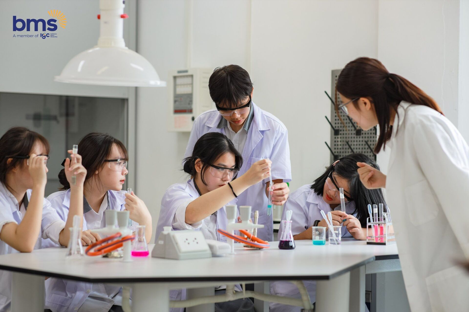 Hình 1. Học sinh BMS làm thí nghiệm tại phòng lab.