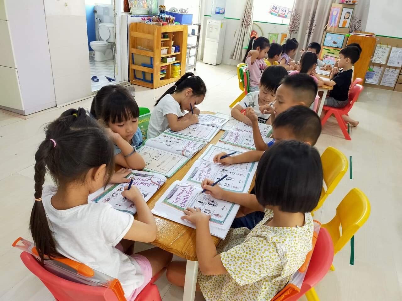 Các con còn nhỏ, các con có thể chủ động làm những việc nhỏ cho chính bản thân của mình và không cần người khác nhắc nhở. Con chủ động đánh răng, chủ động đi dép, chủ động nói lời xin lỗi khi mình làm sai…. Trên lớp các cô dạy những bài học lồng ghép giúp các con hiểu được thể nào là mục tiêu của bản thân, các con sẽ bắt đầu mục tiêu của các con như thế nào?