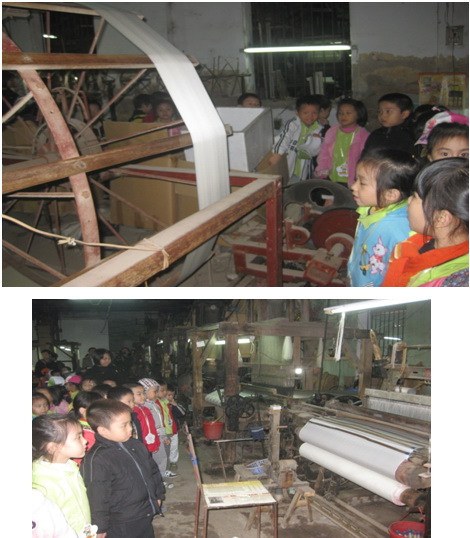 Các bạn được tới tham quan xưởng dệt Văn Mão, một xưởng dệt cách cổng làng không xa. Các bạn rất ngạc nhiên vì tất cả các công đoạn trong xưởng đều được làm bằng máy. Máy quay tơ, máy dệt vải kêu inh ỏi….