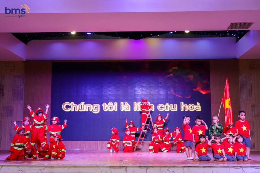 BMSers nhí trổ tài đóng vai lính cứu hỏa trên sân khấu