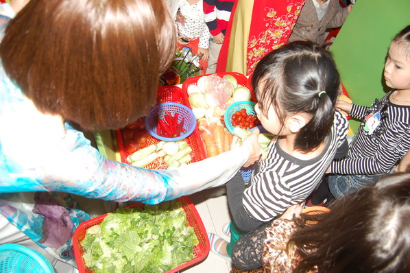 Trong phần thi ” Mẹ và bé cùng trổ tài” dành cho các cặp mẹ và con của khối mẫu giáo Nhỡ, các bé phải thể hiện sự khéo léo nhanh nhẹn của mình khi vượt qua chướng ngại vật để đi chợ theo yêu cầu của mẹ để mua về các nguyên liệu giúp mẹ chế biến món ăn, các mẹ có cơ hội được khoe tài nấu ăn, được thể hiện tình yêu thương gia đình qua những món salat đẹp mắt và bổ dưỡng.