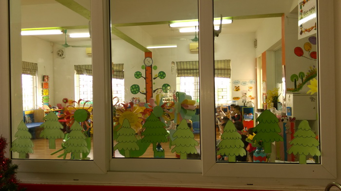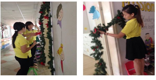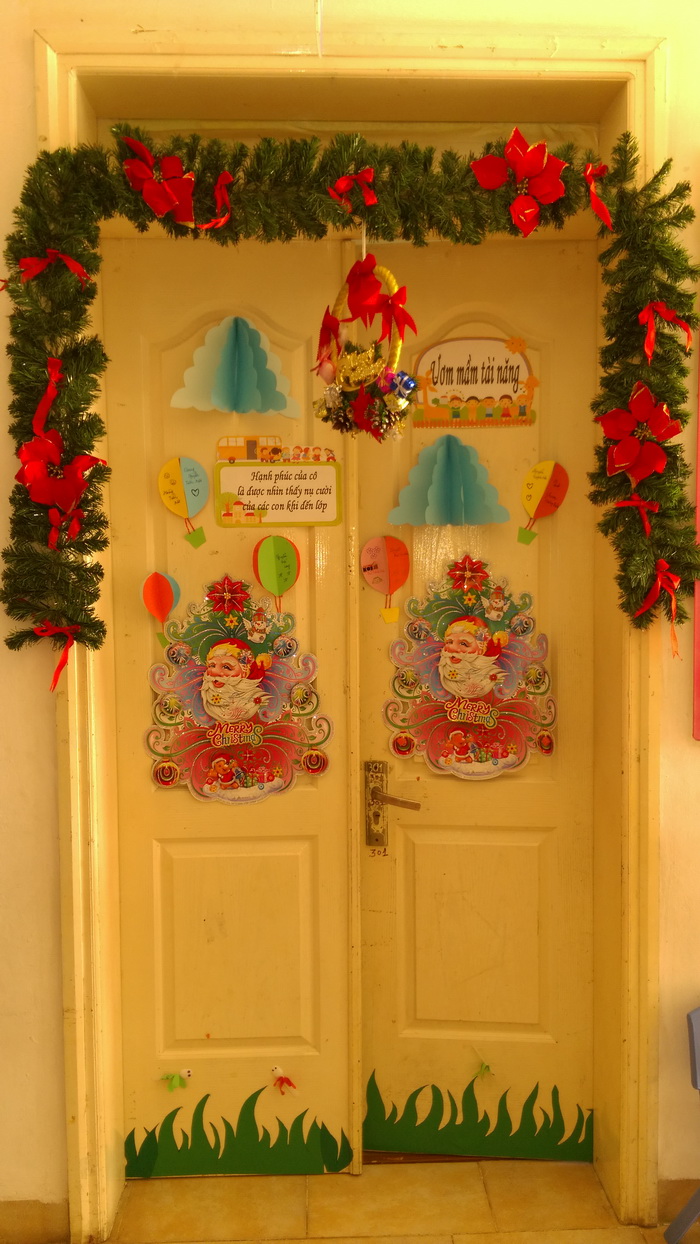 Và trong không khí se lạnh của tiết trời mùa đông Trường MN Ban Mai đang tưng bừng đón chào Noel. Bất kì ai đến đây cũng không khỏi bất ngờ bở diện mạo thật mới , toàn trường khoác lên mình màu xanh của cây thông, rực rỡ những ánh đèn nhấp nháy những món quà , hình bông tuyết, người tuyết quanh sân trường, hành lang, lớp học…đâu đâu cũng lủng lẳng những gói quà nhiều màu sắc buộc nơ xinh xắn treo trên những cây thông lung linh sắc màu được trang trí ở khắp lớp học bằng đôi bàn tay khéo léo của cô và trò khối Mickey.