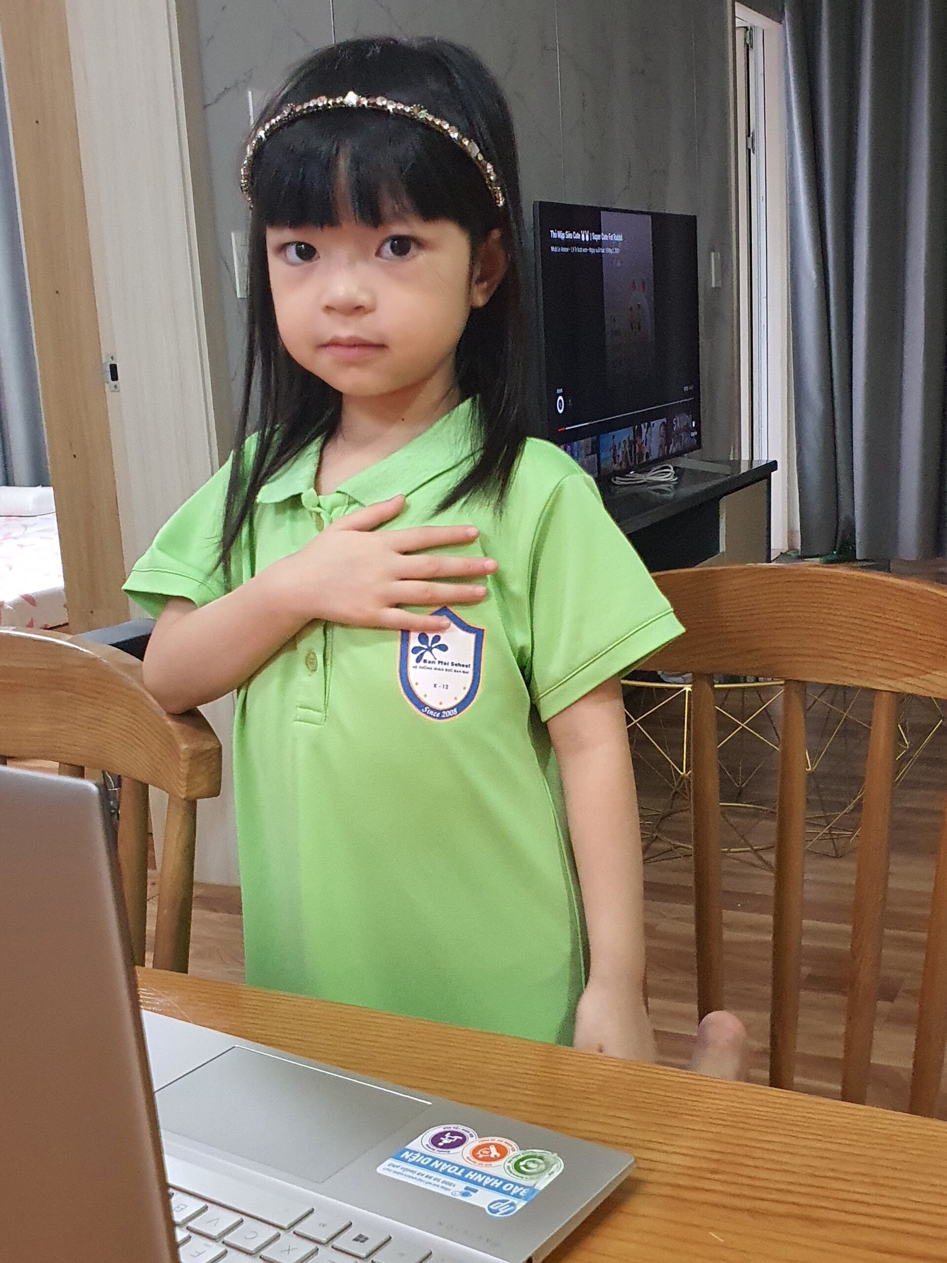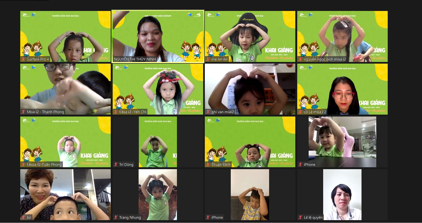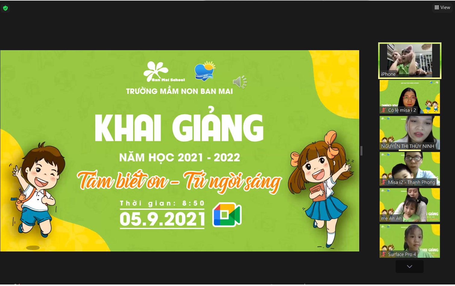 Đúng 9h sáng ngày 5/9 năm học 2021 – 2022 với chủ đề “Tâm biết ơn – Trí ngời sáng” của trường Mầm non Ban Mai chính thức được bắt đầu. Một lễ khai giảng không cờ, không hoa, không cần bố mẹ dắt tay đến trường. Cũng chẳng sợ có nước mắt, sự bẽn lẽn khi mới đến lớp ngày đầu. Lễ khai giảng gói gọn qua những chiếc màn hình máy tính, điện thoại nhỏ. Con được gặp cô giáo, được gặp các bạn qua những ô màn hình nhỏ xíu, xinh xinh.