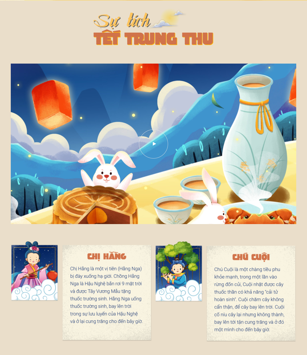 Thầy cô, quý vị phụ huynh và các con tìm hiểu sự tích Trung thu qua một bộ phim hoạt hình ngắn. Thông qua đó, chúng ta hiểu được nguồn gốc của Trung thu và chị Hằng, chú Cuội