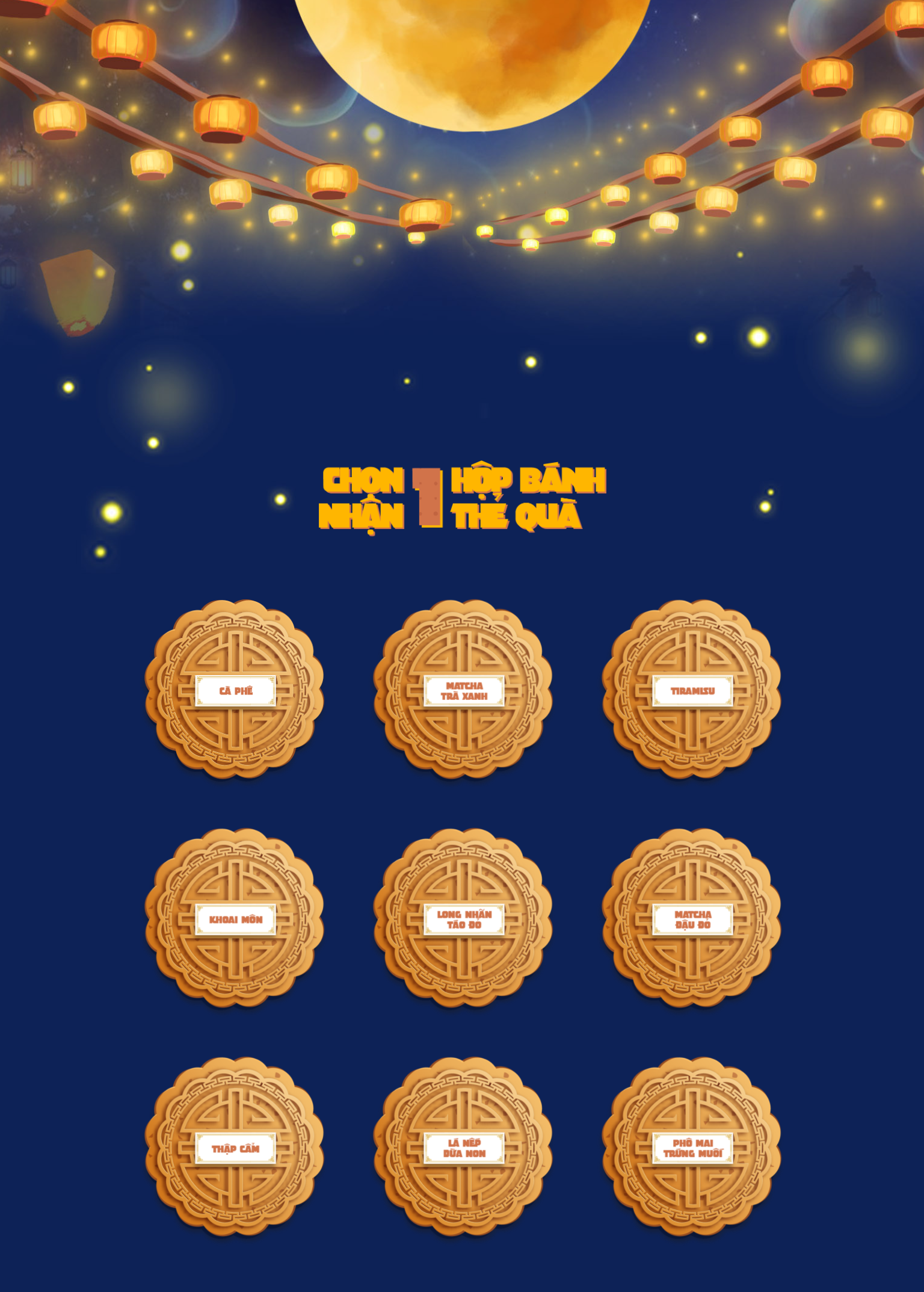 Đến với gian bánh Trung thu vô cùng đặc biệt, chúng ta sẽ quan sát các vị bánh vừa truyền thống – vừa hiện đại và bấm chọn vào vị bánh mình yêu thích.