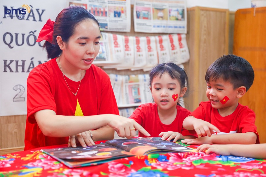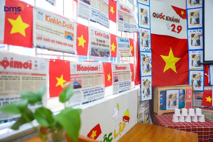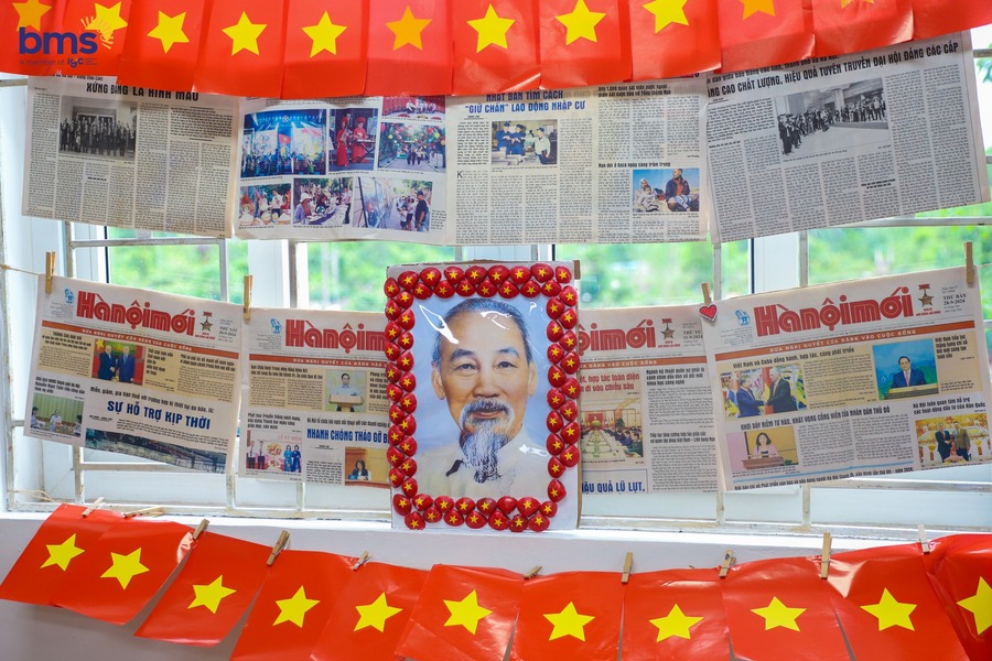 Các BMSer nhí, dù còn nhỏ đã có cơ hội chạm vào “hơi thở” thiêng liêng của ngày Lễ trọng đại dân tộc qua những hoạt động ý nghĩa. Cùng cô giáo làm cờ, dán sao, cắt chữ, tô màu những biểu tượng đặc trưng của đất nước, các con như trở thành những “nghệ nhân nhí” sáng tạo nên sắc màu Tổ quốc. Hòa cùng không gian là tiếng hát “Ai yêu Bác Hồ Chí Minh hơn thiếu niên nhi đồng” trong trẻo, đầy cảm xúc được ngân vang. Những khoảnh khắc ấy chính là cách tình yêu quê hương được gieo hạt trong mỗi trái tim.