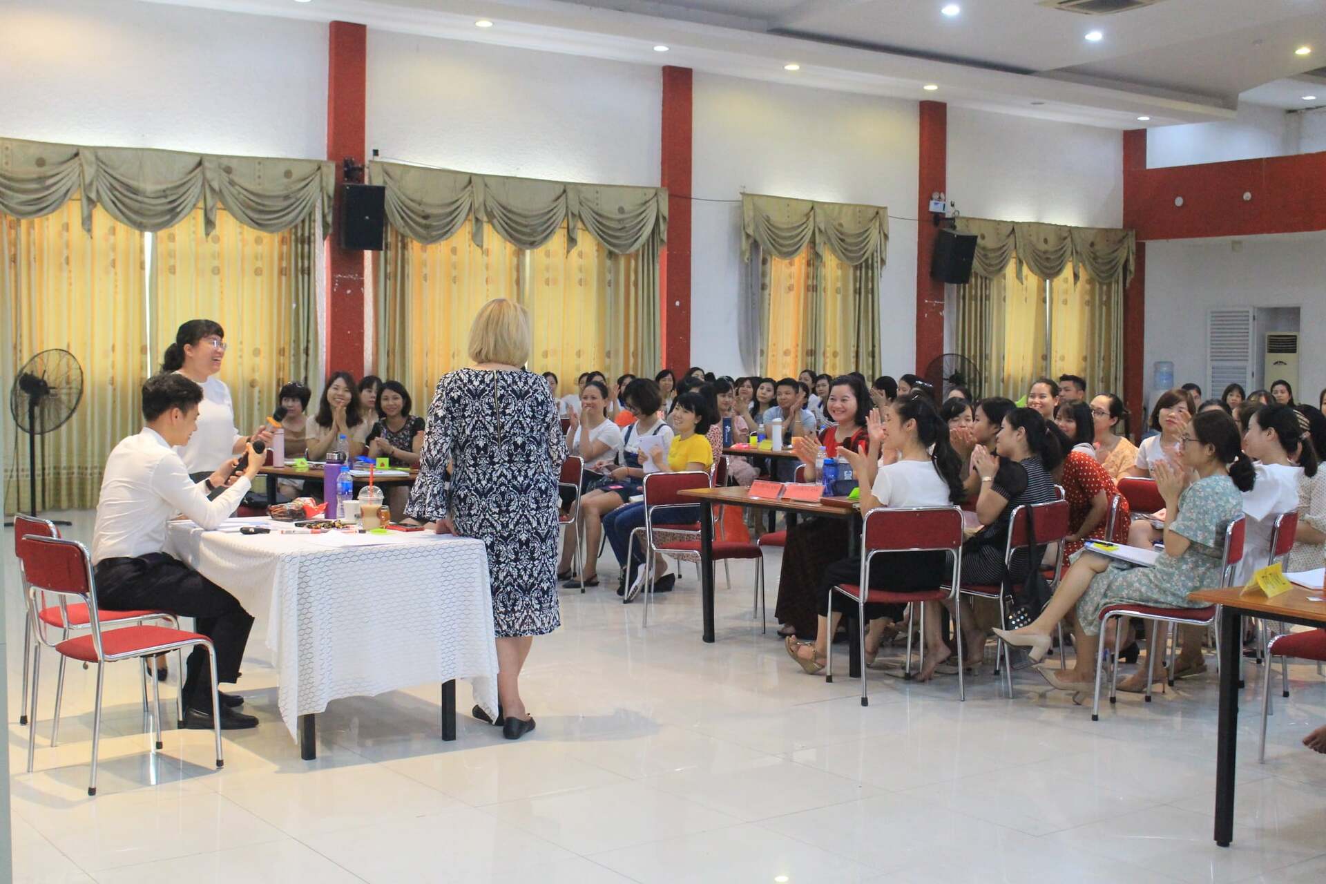 Bà Linda Perkins, chuyên gia giáo dục đến từ Australia khơi gợi cảm hứng, động lực cho các cán bộ, giáo viên của nhà trường bằng cách đặt ra nhiều câu hỏi thú vị.