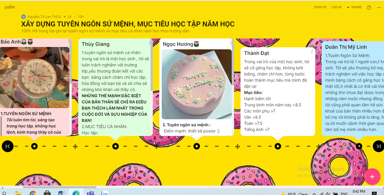 - Hiện thực hoá quy trình Lim( Leader in Me): Tập thể lớp/ học sinh xây dựng Tuyên ngôn sứ mệnh; Mục tiêu học tập…