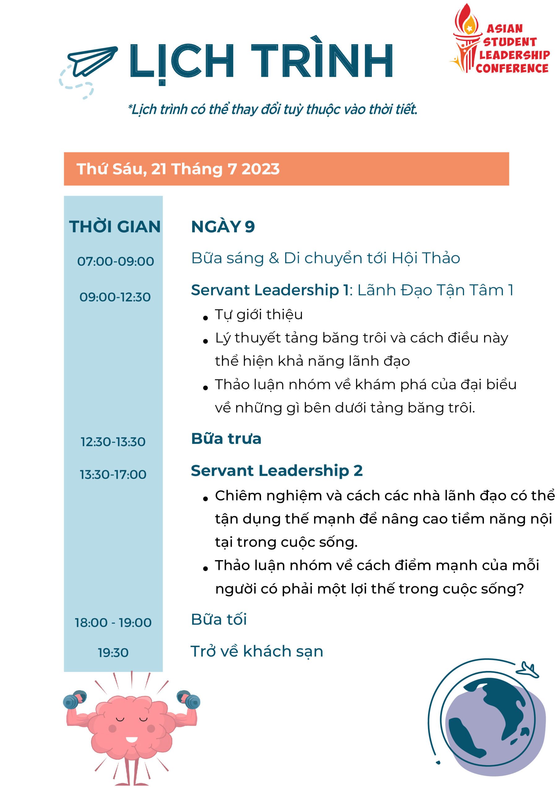 LỊCH TRÌNH TRẠI HÈ LÃNH ĐẠO TRẺ CHÂU Á ASLC