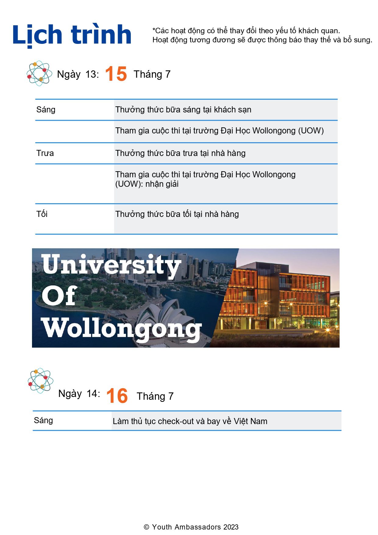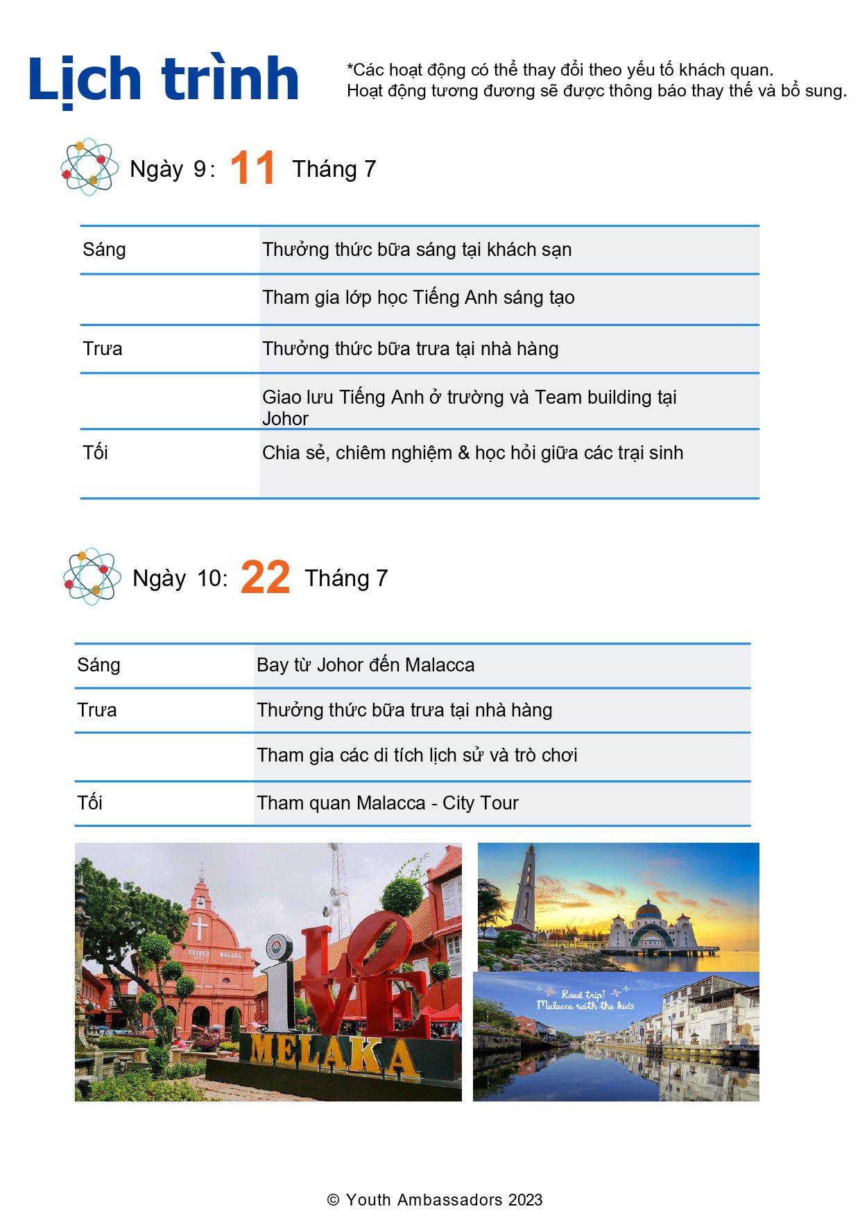 Năm 2023, hai trường sẽ thực hiện chương trình trao đổi học sinh và trải nghiệm cho học sinh và giáo viên với lịch trình như sau: