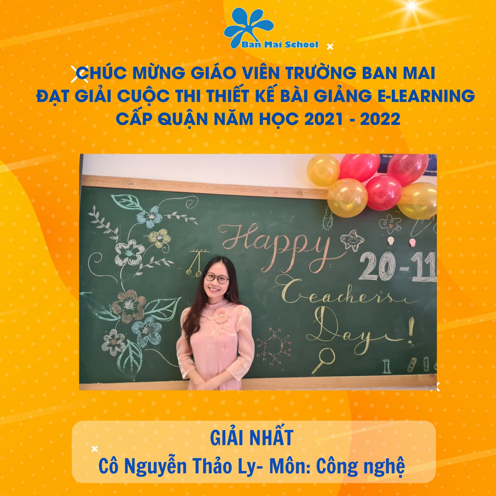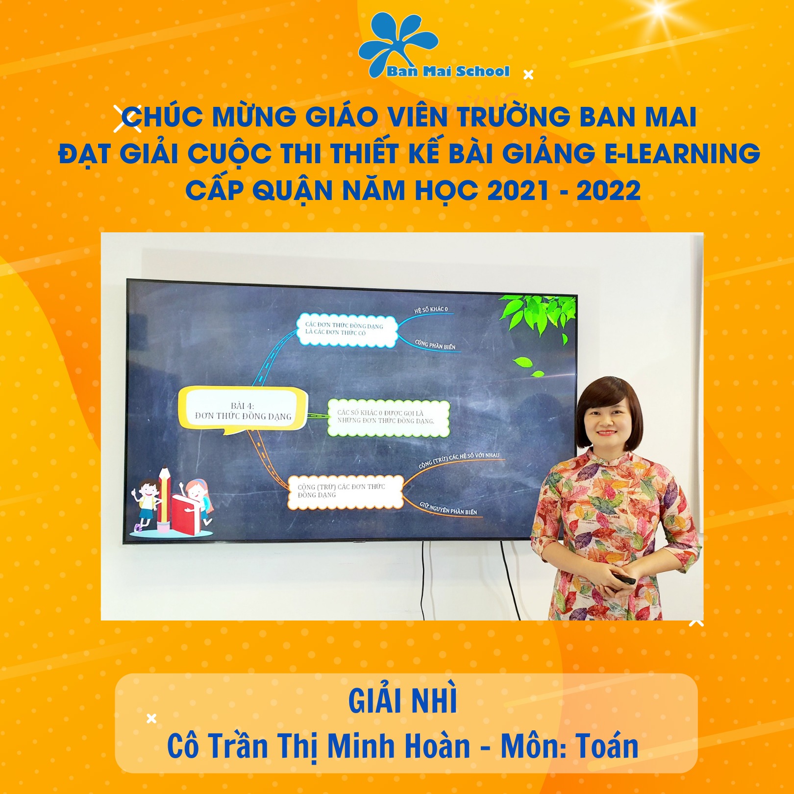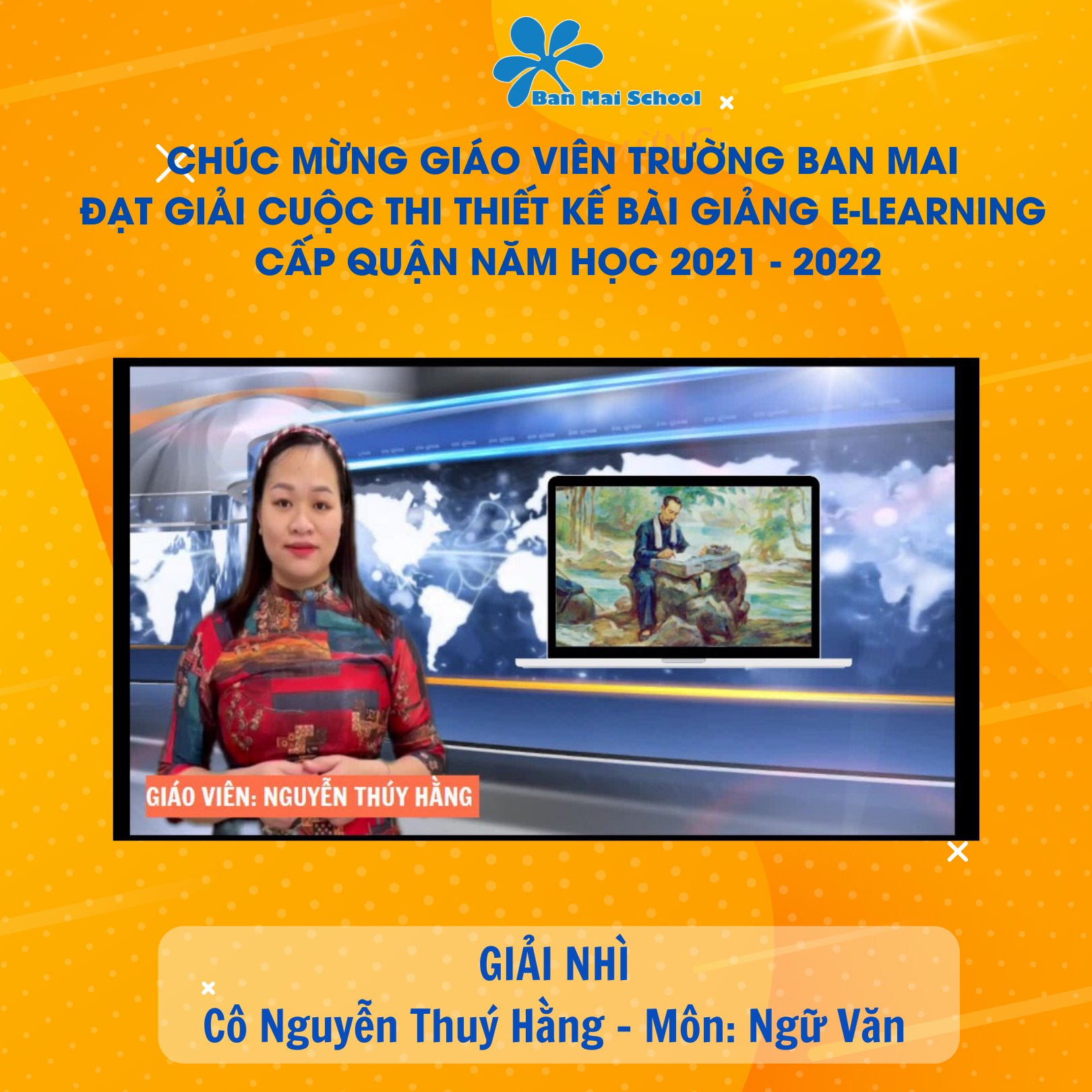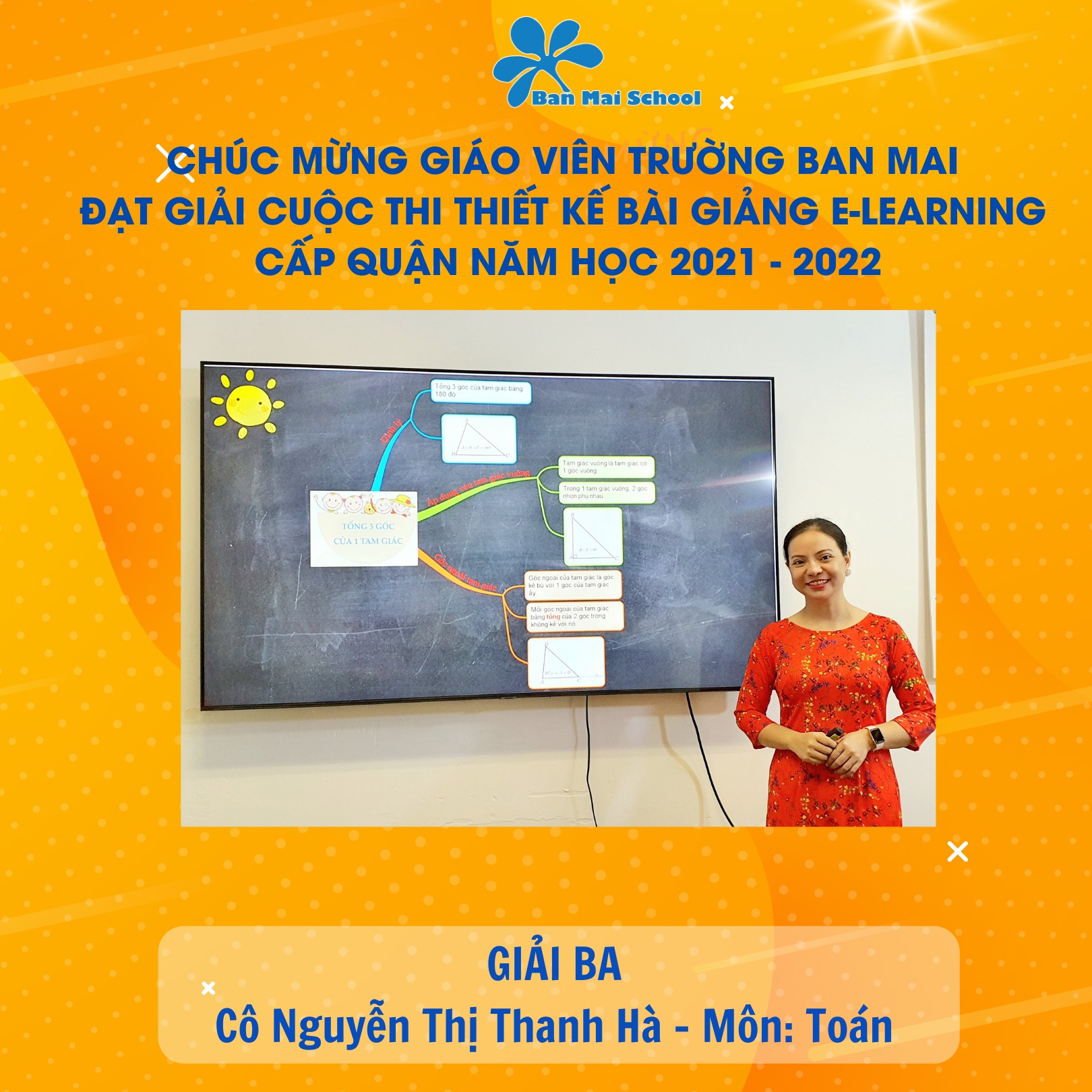 Trường THCS Ban Mai chúc mừng các giáo viên đã đạt giải trong cuộc thi Thiết kế bài giảng E-Learning cấp Quận năm học 2021 – 2022.