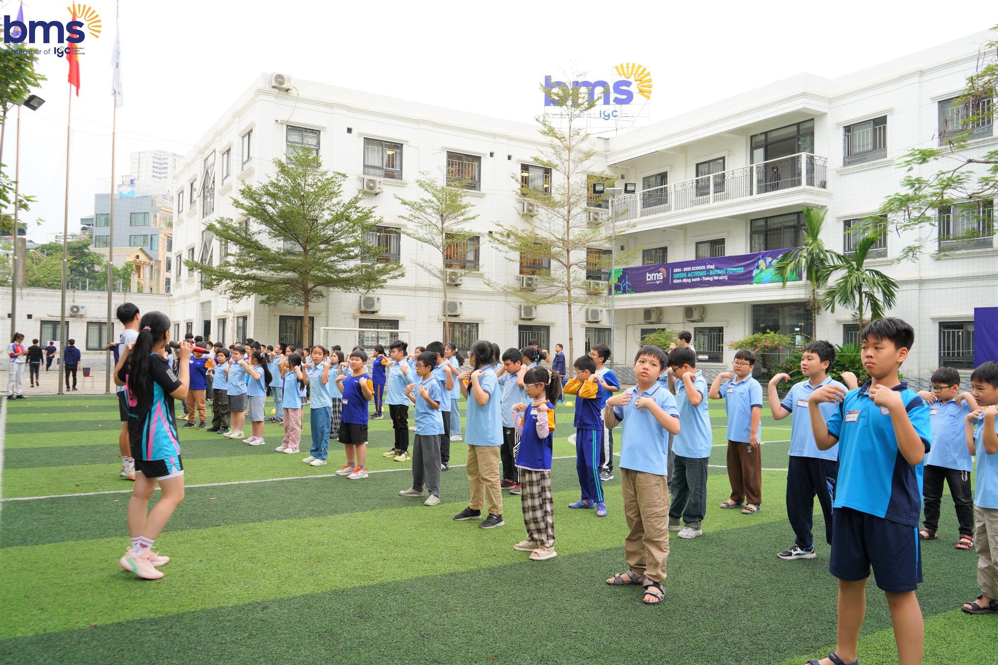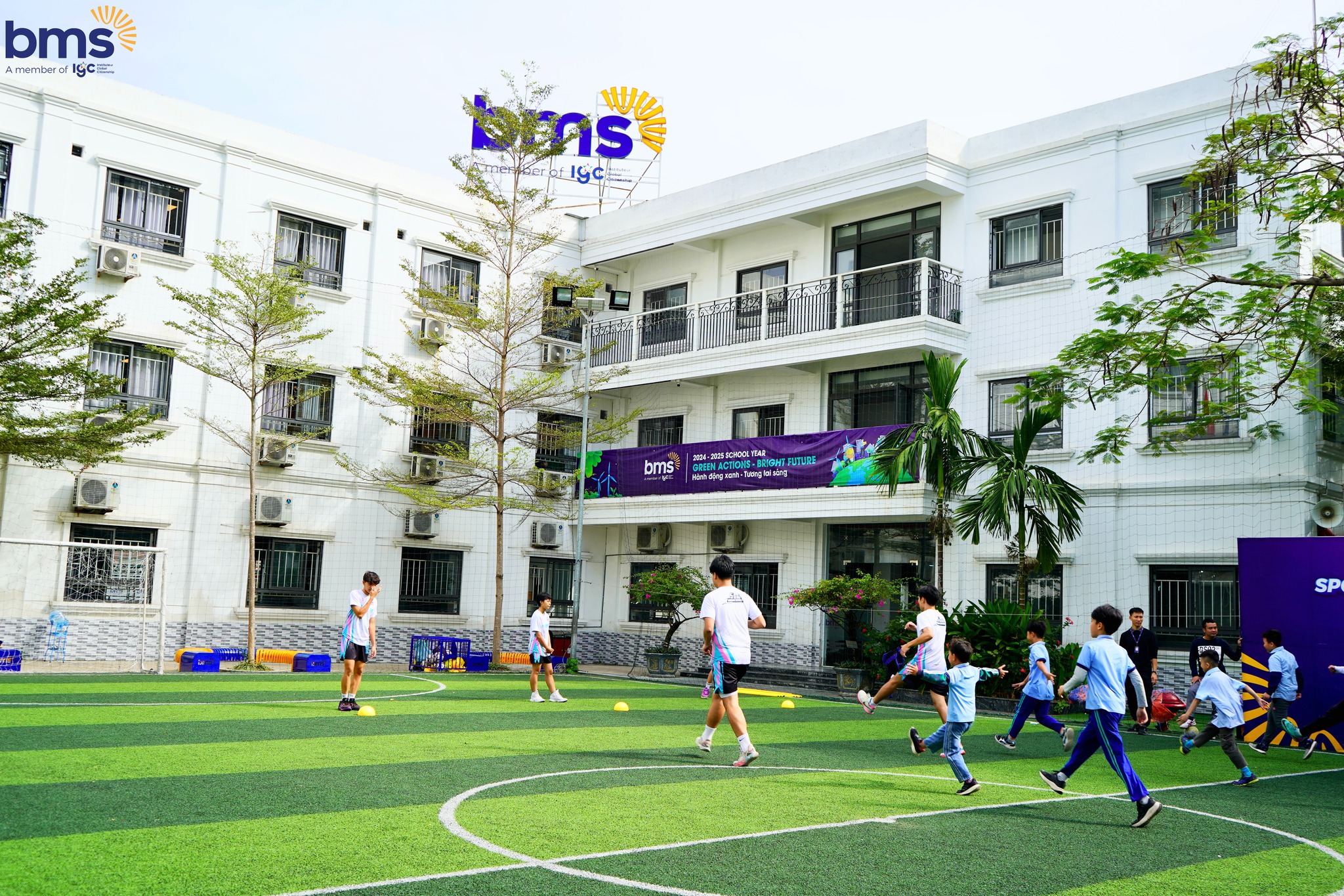 Và đặc biệt, ở BMS còn có những giờ thể thao cực kỳ vui nhộn. Các bạn được tham gia vào các trạm thể thao như: bóng đá, bóng rổ, bóng sọt, Be Warrior và võ thuật. Những hoạt động này giúp chúng ta giải trí, rèn luyện thể lực, phát triển kỹ năng vận động và làm việc nhóm. Bạn sẽ thoải mái tham gia các trận đấu, tranh tài với bạn bè và cùng nhau vui chơi!