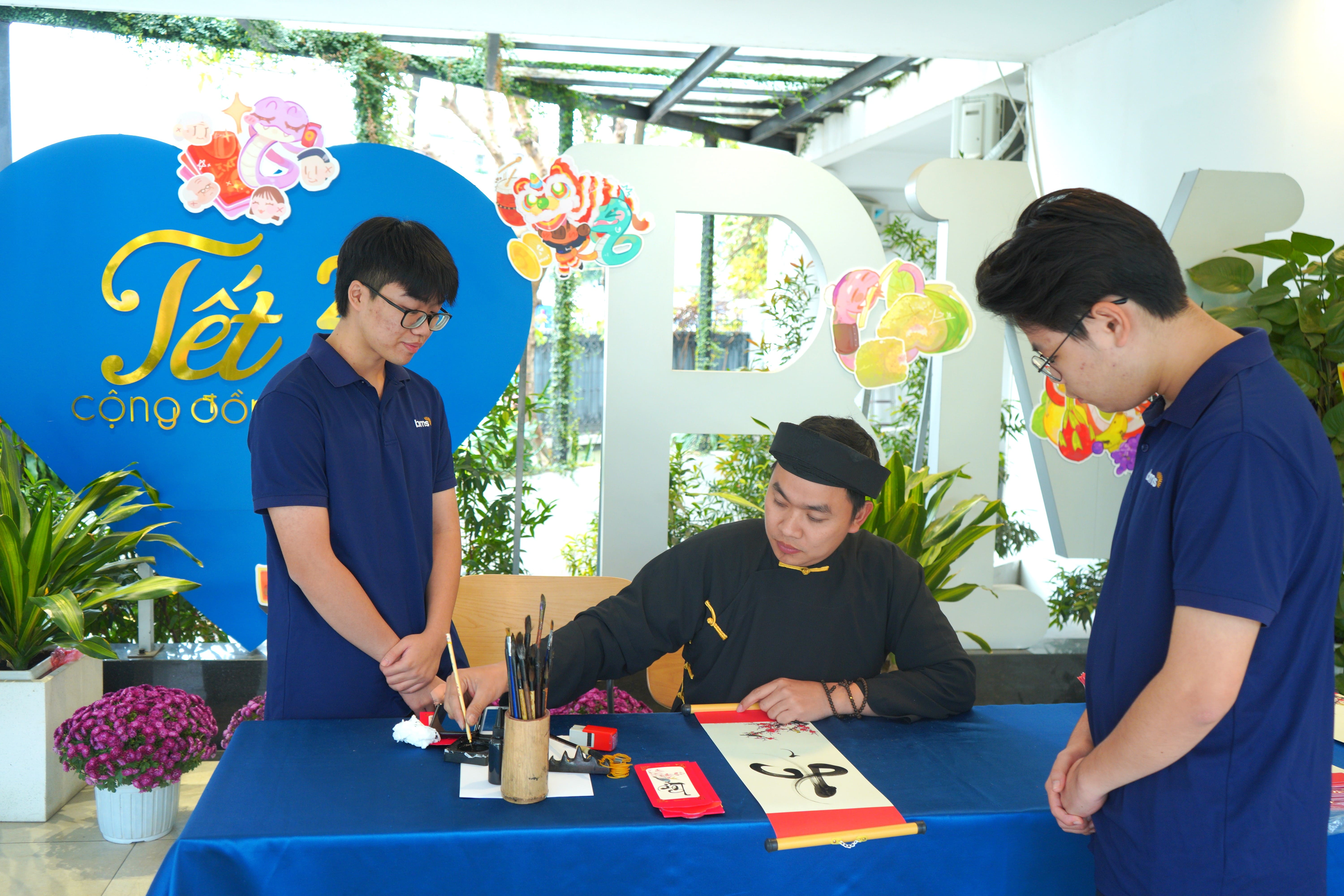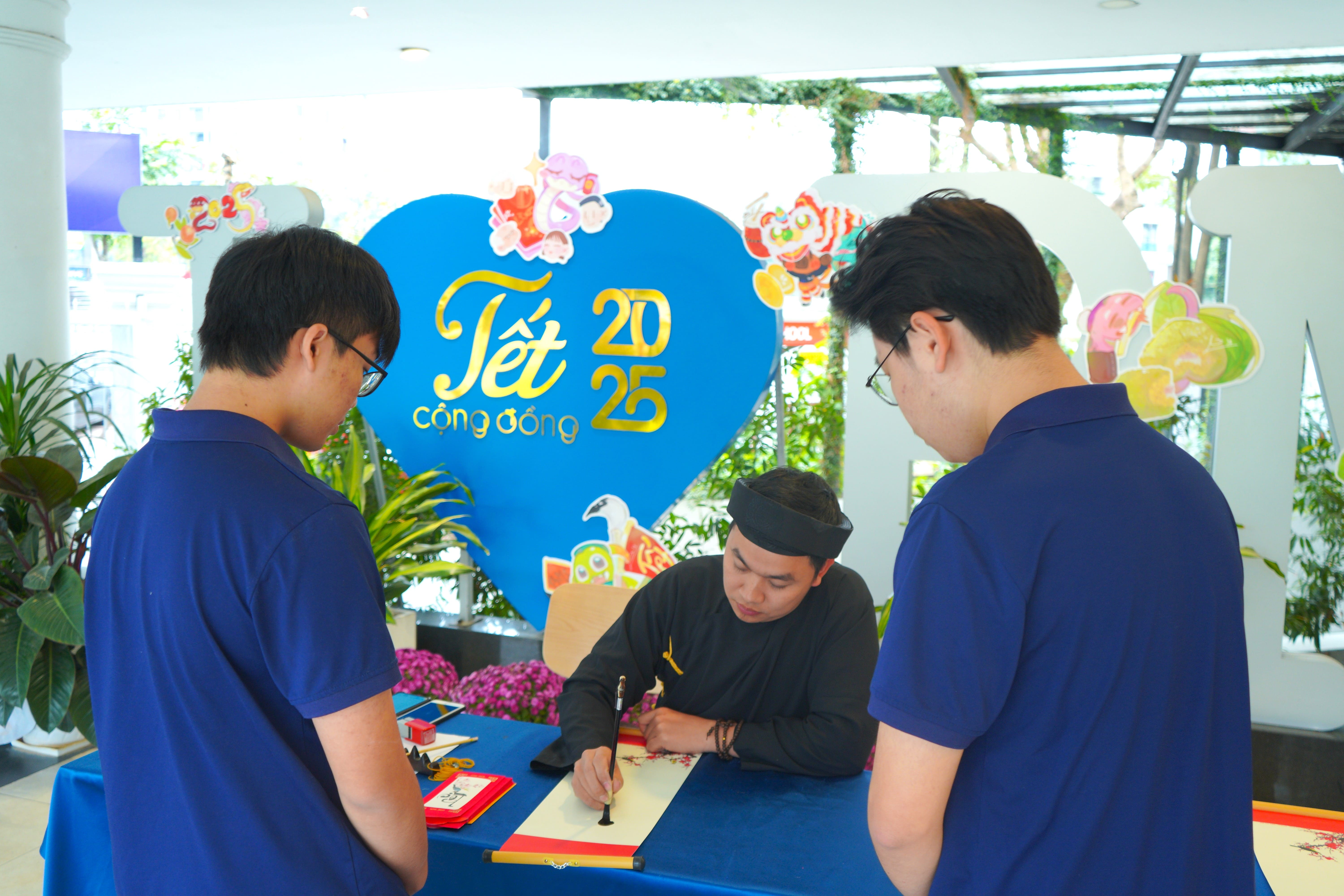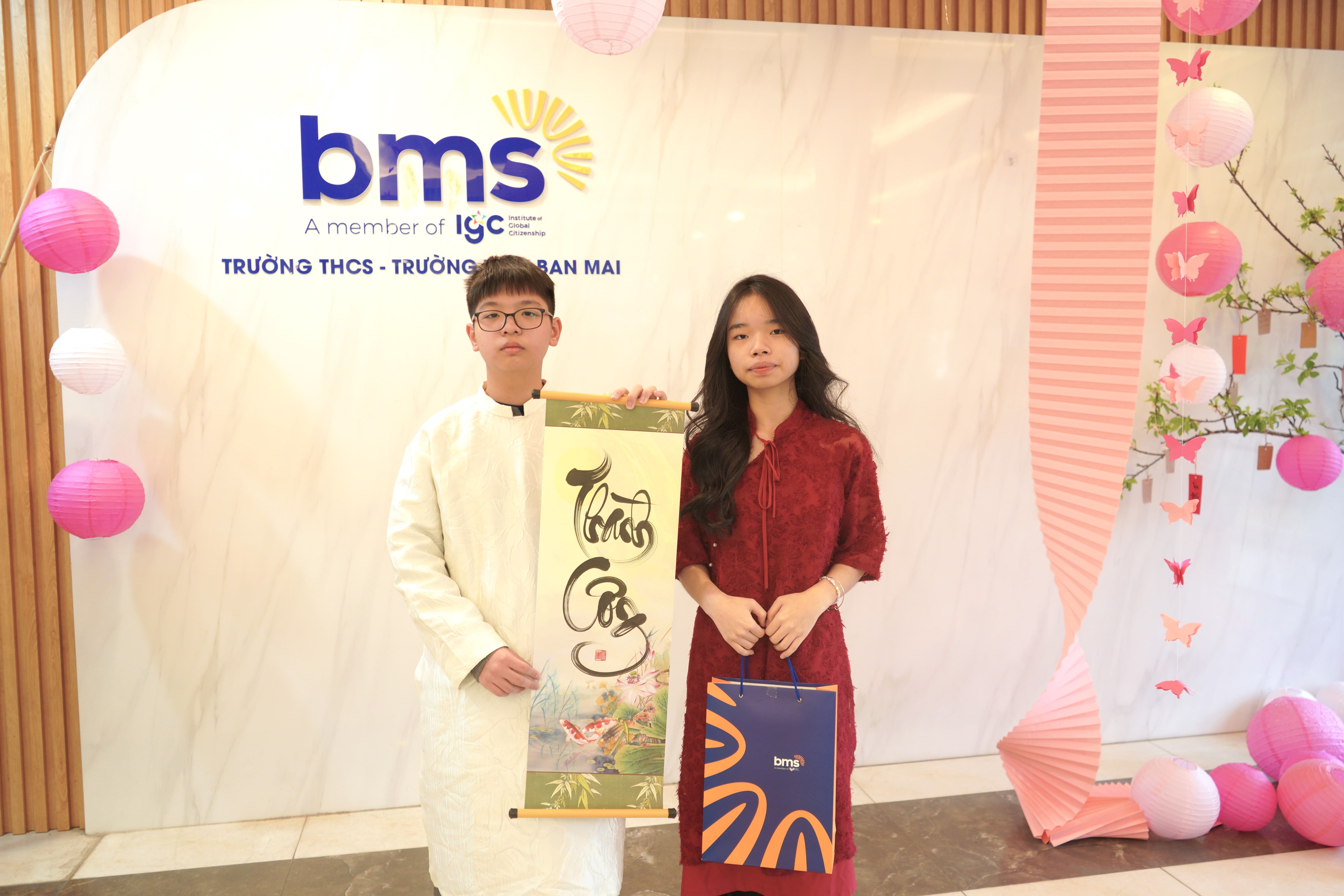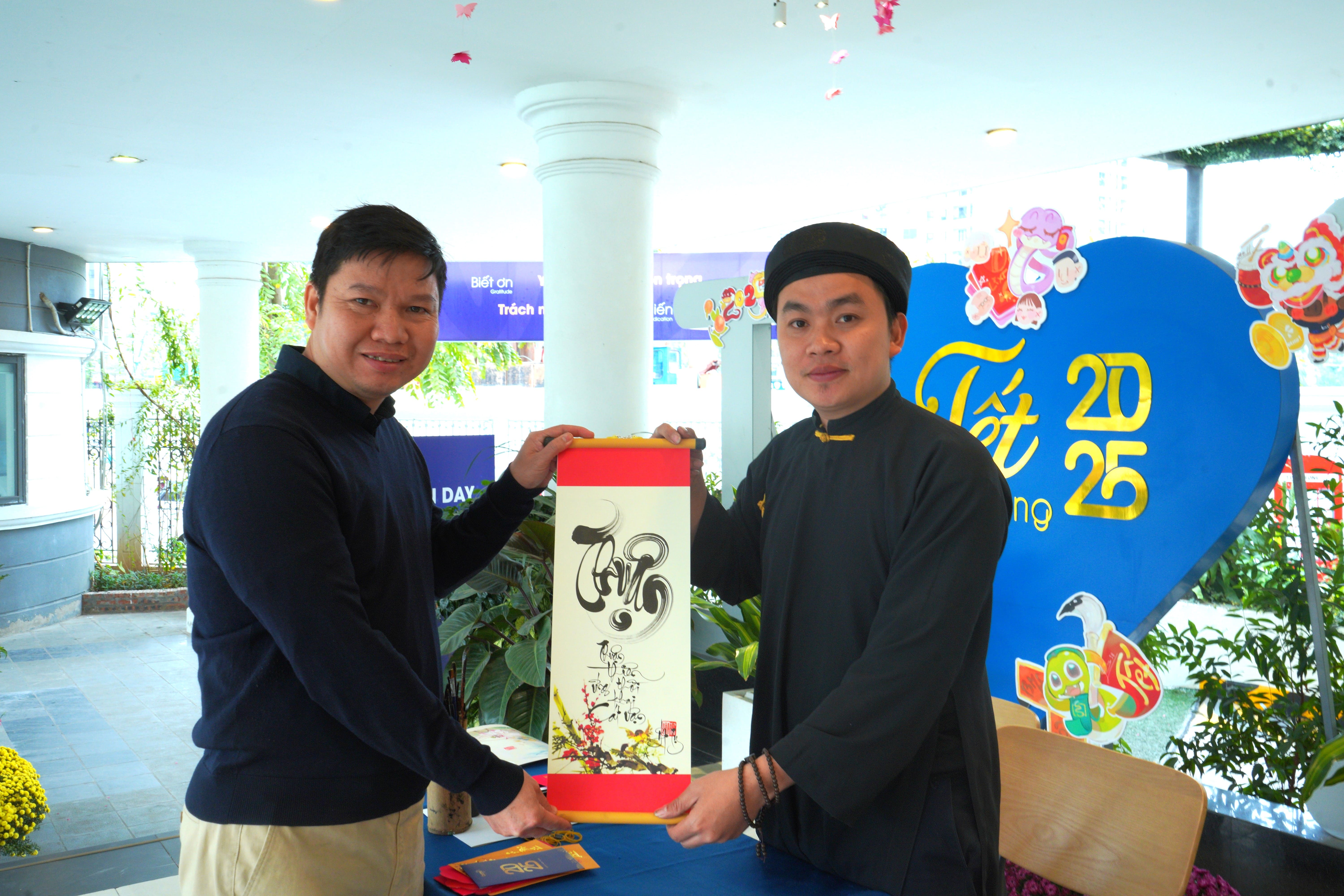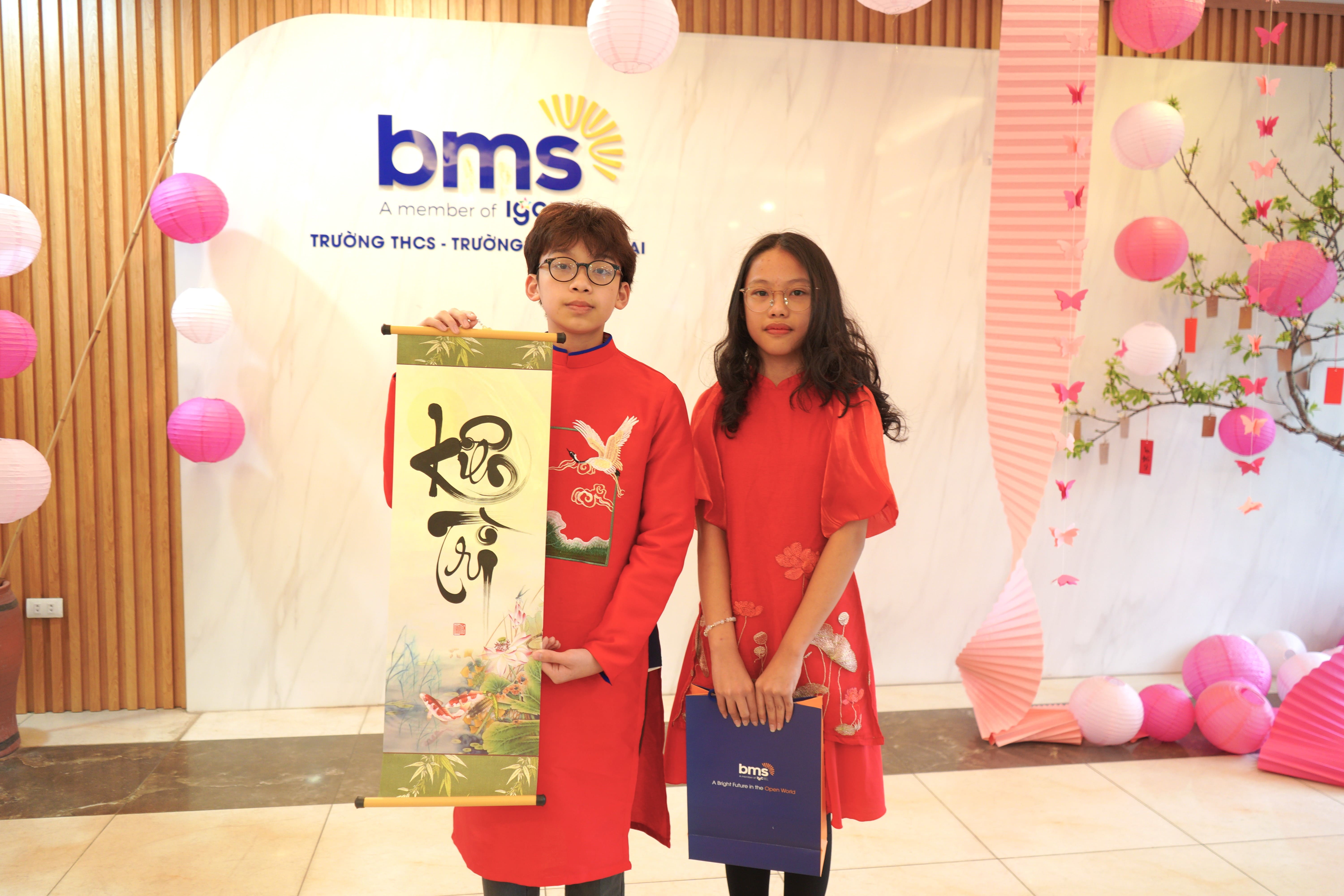Ngay từ sáng sớm, khuôn viên trường đã rộn ràng tiếng cười nói, rực rỡ sắc màu với những câu đối đỏ, thư pháp uyển chuyển và không khí háo hức của Các bạnhọc sinh. Nhà trường đã mời các thầy đồ là những người có nhiều năm kinh nghiệm trong nghệ thuật thư pháp để viết chữ tặng thầy cô và học sinh. Mỗi chữ được lựa chọn đều mang theo những ước nguyện tốt đẹp: "Trí", "Tâm", "Nhẫn", "Hiếu", "Thành Công", "Bình An", "Đăng Khoa"…
