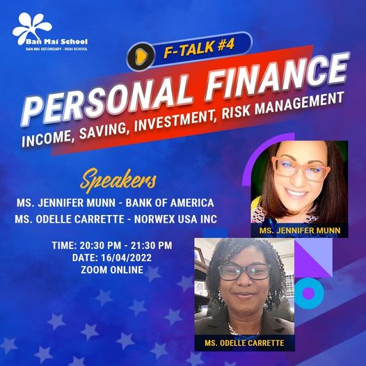 F- TALK #4: PERSONAL FINANCE – TÀI CHÍNH CÁ NHÂN nằm trong chuỗi toạ đàm trực tuyến dành riêng cho học sinh Ban Mai, mở ra cơ hội để học sinh được NÓI – được NGHE – được TƯ VẤN hoàn toàn bằng Tiếng Anh với các chuyên gia đến từ Hoa Kỳ: