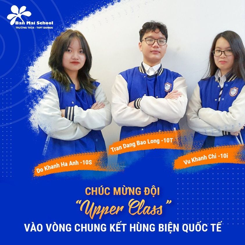 Đội thi “Upper Class” đến từ khối 10 Trường THPT Ban Mai đã dành chiến thắng trước các học sinh khối 10 đến từ trường Quốc tế Siam Singapore (SIS) để tiến vào vòng chung kết cuộc thi tranh biện tiếng Anh các trường Cambridge gặp đội Mandalay Chan Thar (MCTA).