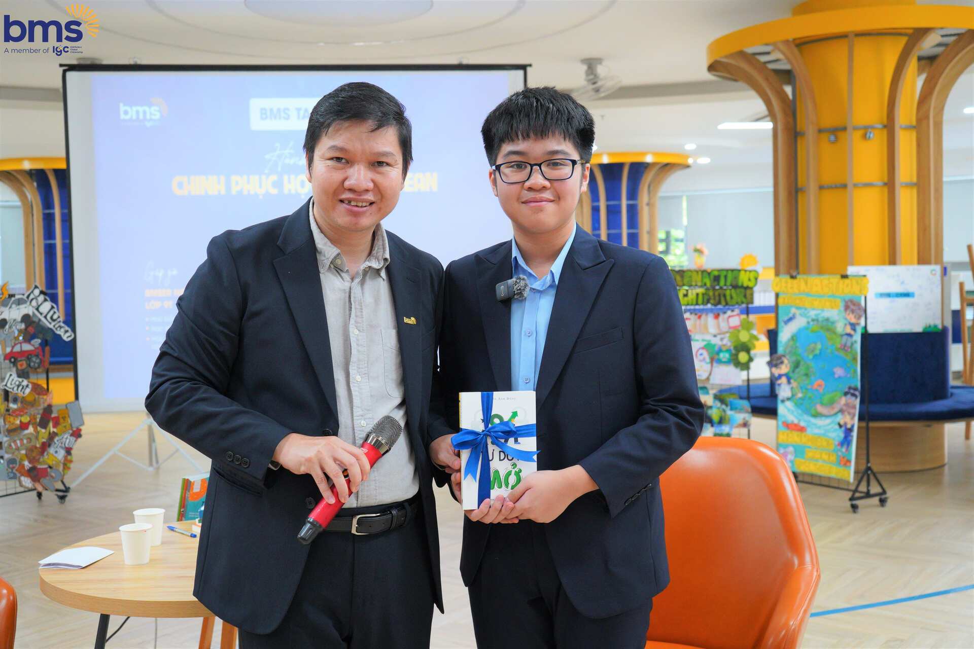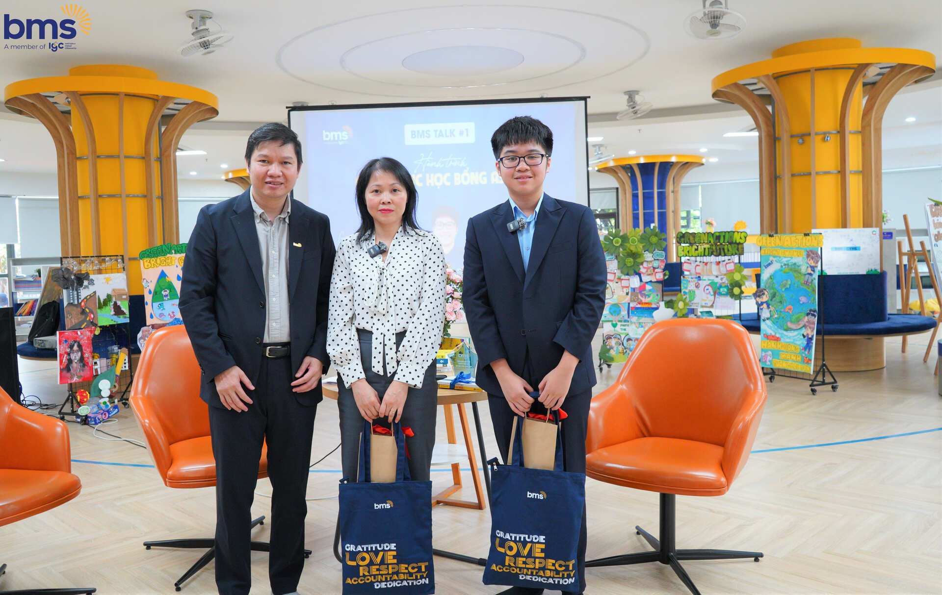 Tại buổi Talk, Đăng Bảo đã cùng Quý Thầy cô, Cha Mẹ học sinh và các bạn học sinh cùng nhìn lại hành trình học tập của mình tại mái trường BMS. Với tinh thần chủ động, tự học và không đi học thêm ở bất cứ đâu, Đăng Bảo đã chứng minh rằng kiên trì, bền bỉ cùng niềm tin và đam mê là chìa khóa mở ra những cánh cửa thành công. Hơn 8 năm qua, cậu học trò này đã ghi dấu bằng hàng loạt những huy chương, giải thưởng cấp quốc gia và quốc tế.