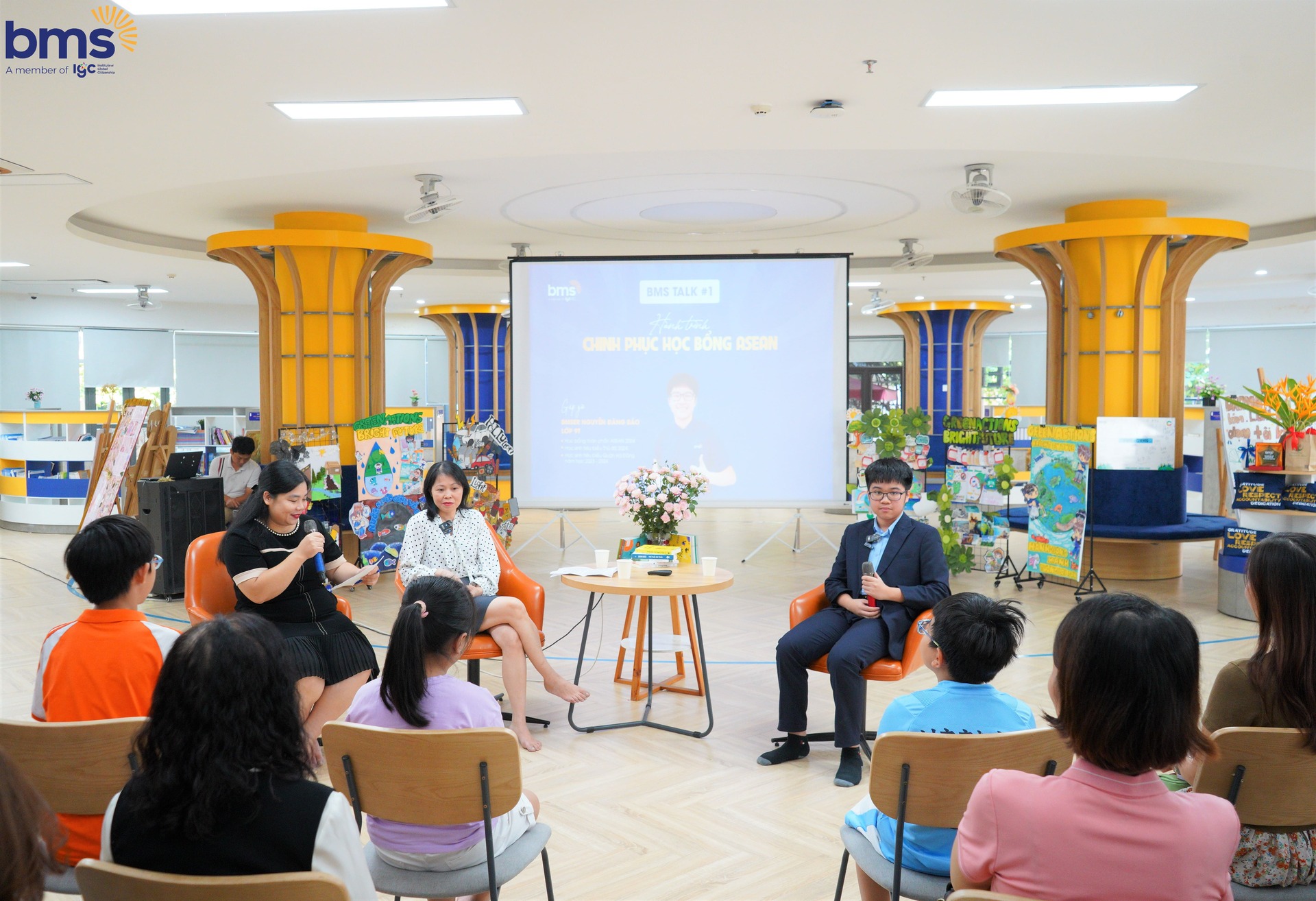 Ngày 5/10 vừa qua, Trường THCS Ban Mai đã tổ chức chương trình BMS Talk #1: Hành trình chinh phục học bổng ASEAN của BMSer Nguyễn Đăng Bảo lớp 9T. Chương trình đã diễn ra trong không khí gần gũi, ấm cúng, mở ra cơ hội đặc biệt để Quý Cha Mẹ, Thầy Cô và các em học sinh được giao lưu, kết nối và học hỏi từ chính câu chuyện của Đăng Bảo cùng gia đình. Những câu chuyện, trải nghiệm chân thực từ Đăng Bảo đã truyền cảm hứng, tiếp thêm động lực cho tất cả những học sinh đang kiên trì theo đuổi ước mơ và mục tiêu học tập của mình.