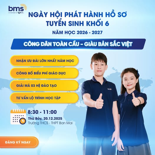 Cha Mẹ quan tâm vui lòng đăng ký tham gia Ngày hội và nhận tư vấn chi tiết tại đây: https://tuyensinhphothong.banmaischool.edu.vn/