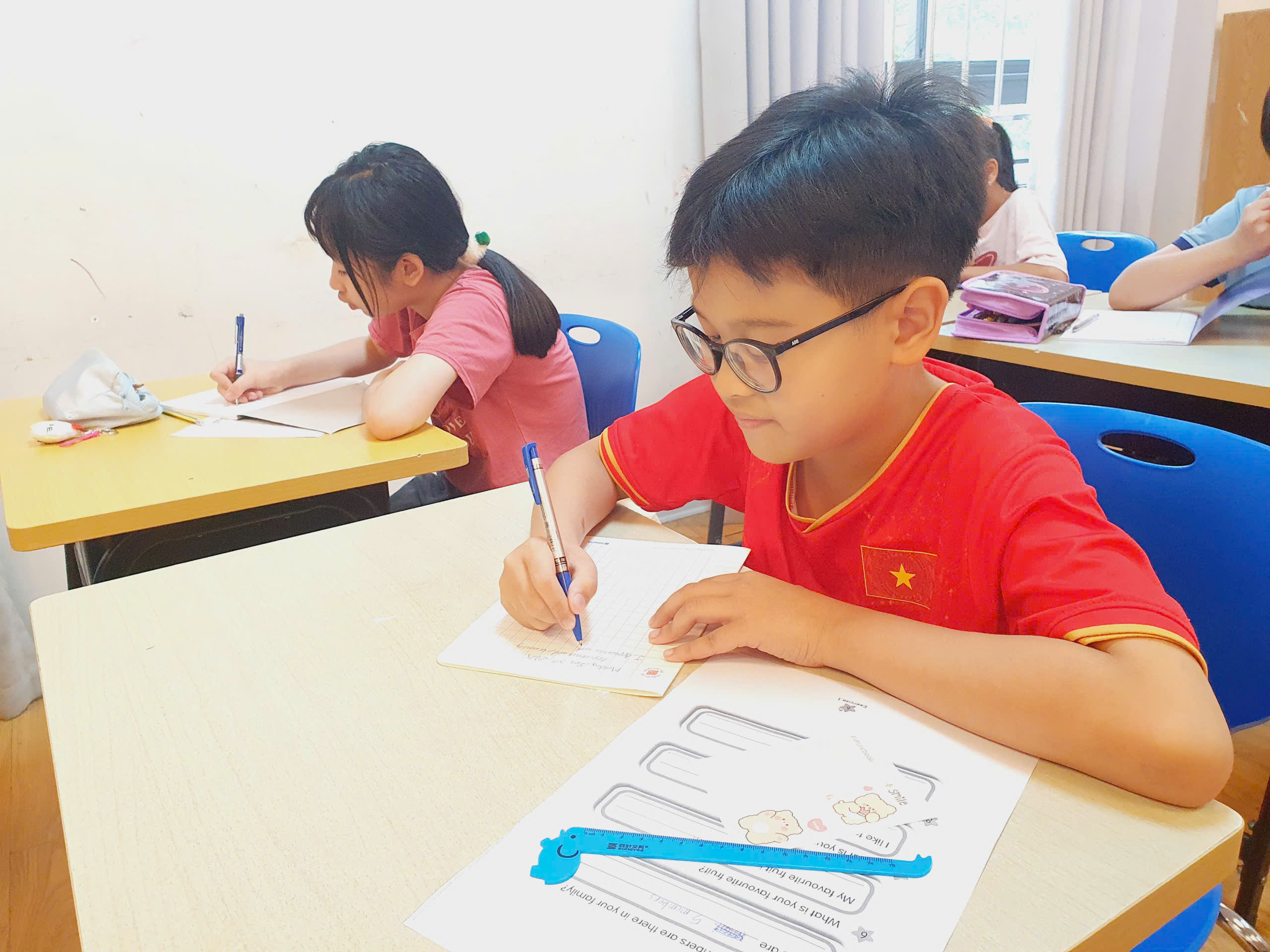 Chương trình cũng lồng ghép các tiết học tiếng Anh theo chủ đề thực tiễn giúp học sinh làm quen với cách học liên môn, tăng cường phản xạ ngôn ngữ trong bối cảnh đời sống hàng ngày. Điểm nổi bật của khóa học năm nay là học sinh được tiếp cận công nghệ Trí tuệ nhân tạo (AI) thông qua các tiết học sáng tạo, nơi các bạn có thể tự tay tạo sản phẩm học tập ứng dụng công nghệ. “Tiết học AI thực sự khiến các con hào hứng và mở rộng tư duy. Đây là cơ hội để học sinh lớp 5 sớm làm quen với các công cụ học tập của thời đại số” – cô Kim Dung, giáo viên phụ trách chương trình chia sẻ.