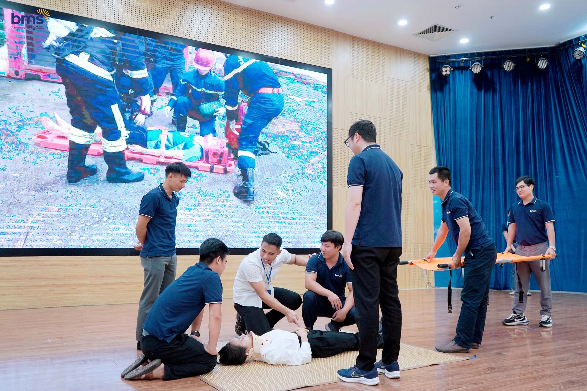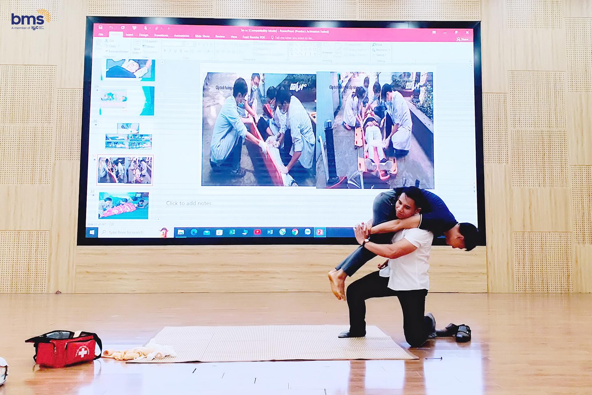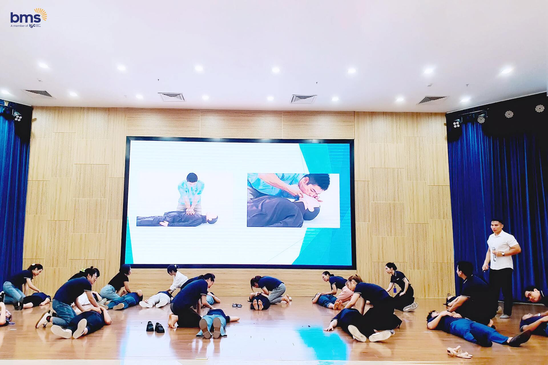 Dưới sự hướng dẫn của Thầy Thiều Thanh Thuận – Giảng viên Đại học Phòng cháy chữa cháy, thầy cô tại BMS đã được trang bị đầy đủ các kỹ năng quan trọng như sơ cứu khi ngất xỉu, sơ cứu điện giật, đuối nước, xử lý vết thương, đột quỵ… và nhiều tình huống khẩn cấp khác có thể xảy ra trong và ngoài trường học. Những tình huống giả định được mô phỏng một cách thực tế, giúp đội ngũ Cán bộ - Giáo viên - Nhân viên tự tin hơn trong việc ứng phó với các sự cố bất ngờ.