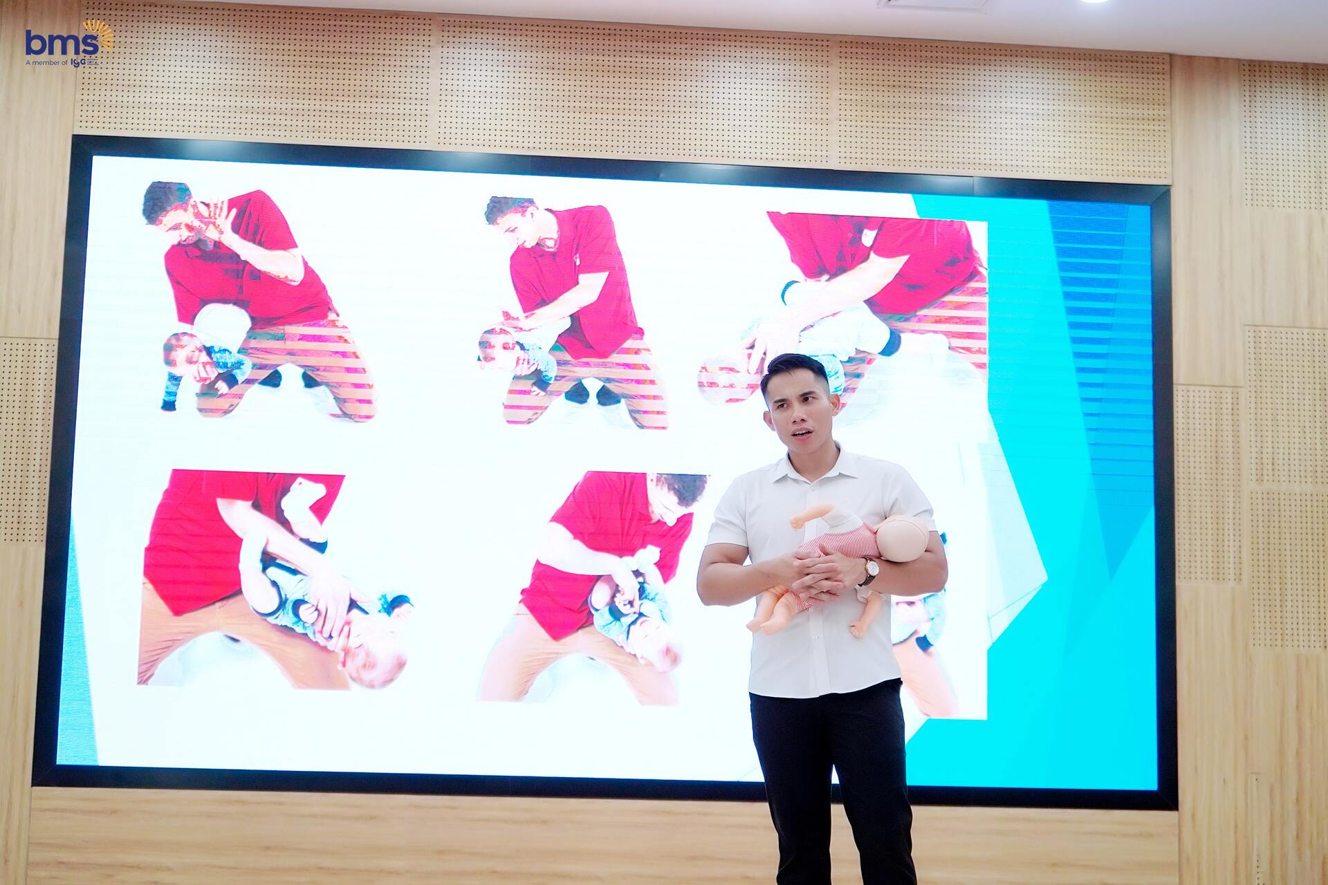 Tại Trường BMS, an toàn của học sinh luôn là ưu tiên hàng đầu. Với mục tiêu xây dựng một môi trường học tập và sinh hoạt an toàn, nhà trường đã tổ chức khóa "Huấn luyện sơ cứu - cấp cứu" dành cho toàn bộ Cán bộ - Giáo viên - Nhân viên năm học 2024 -2025.