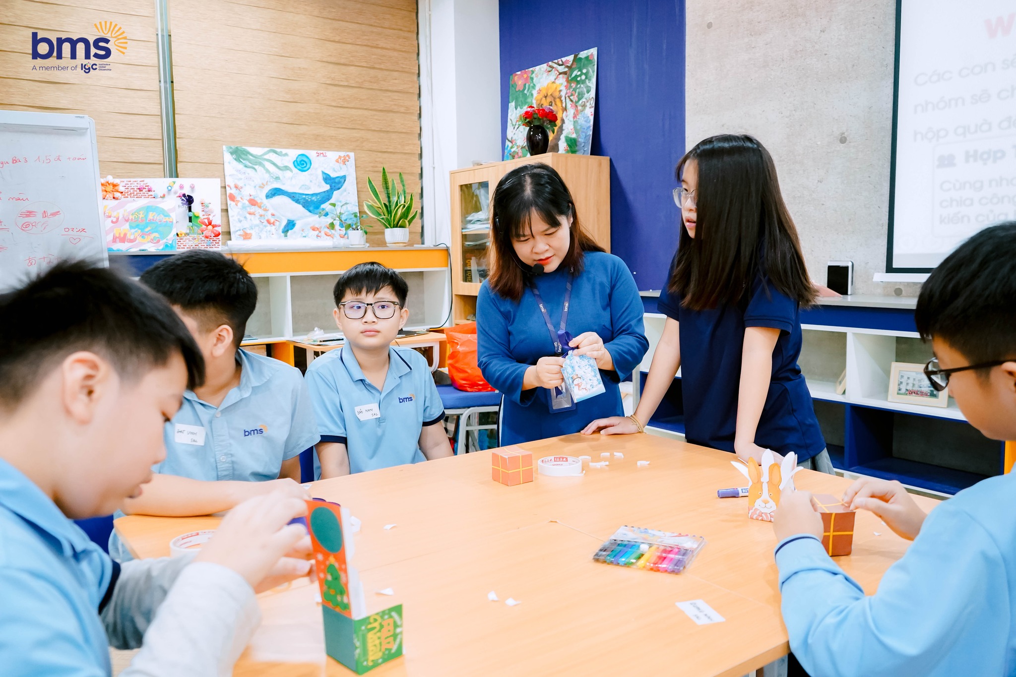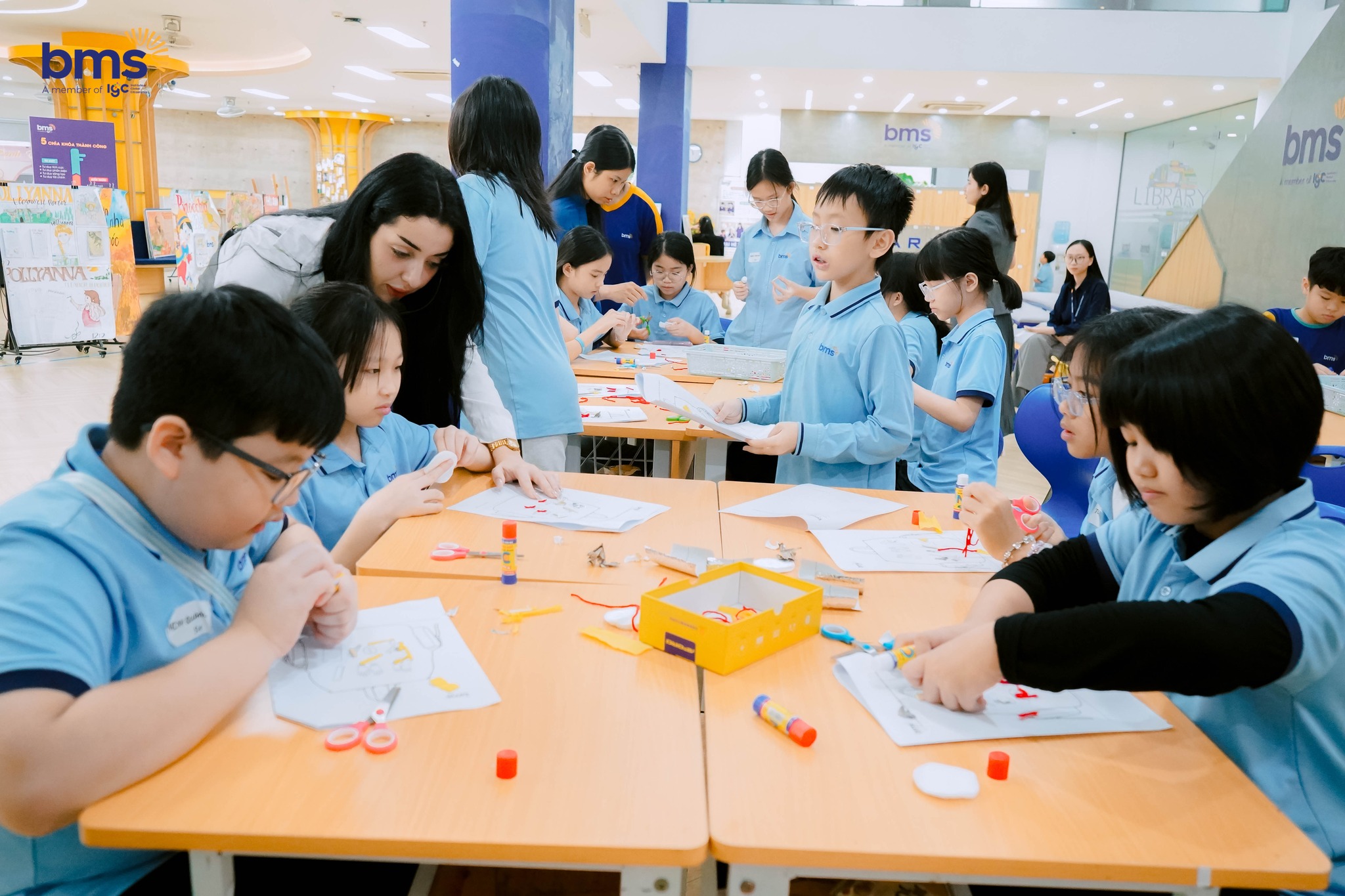 Tại thư viện, các BMSers bước vào hành trình khám phá tri thức đầy hứng khởi. Các bạn say mê tìm hiểu thế giới hình khối trong môn Toán và thực hành làm những món quà handmade độc đáo. Không gian yên tĩnh cùng những trang sách mở ra cơ hội trải nghiệm học tập thú vị, giúp các con phát triển tư duy sáng tạo và niềm yêu thích học tập.
