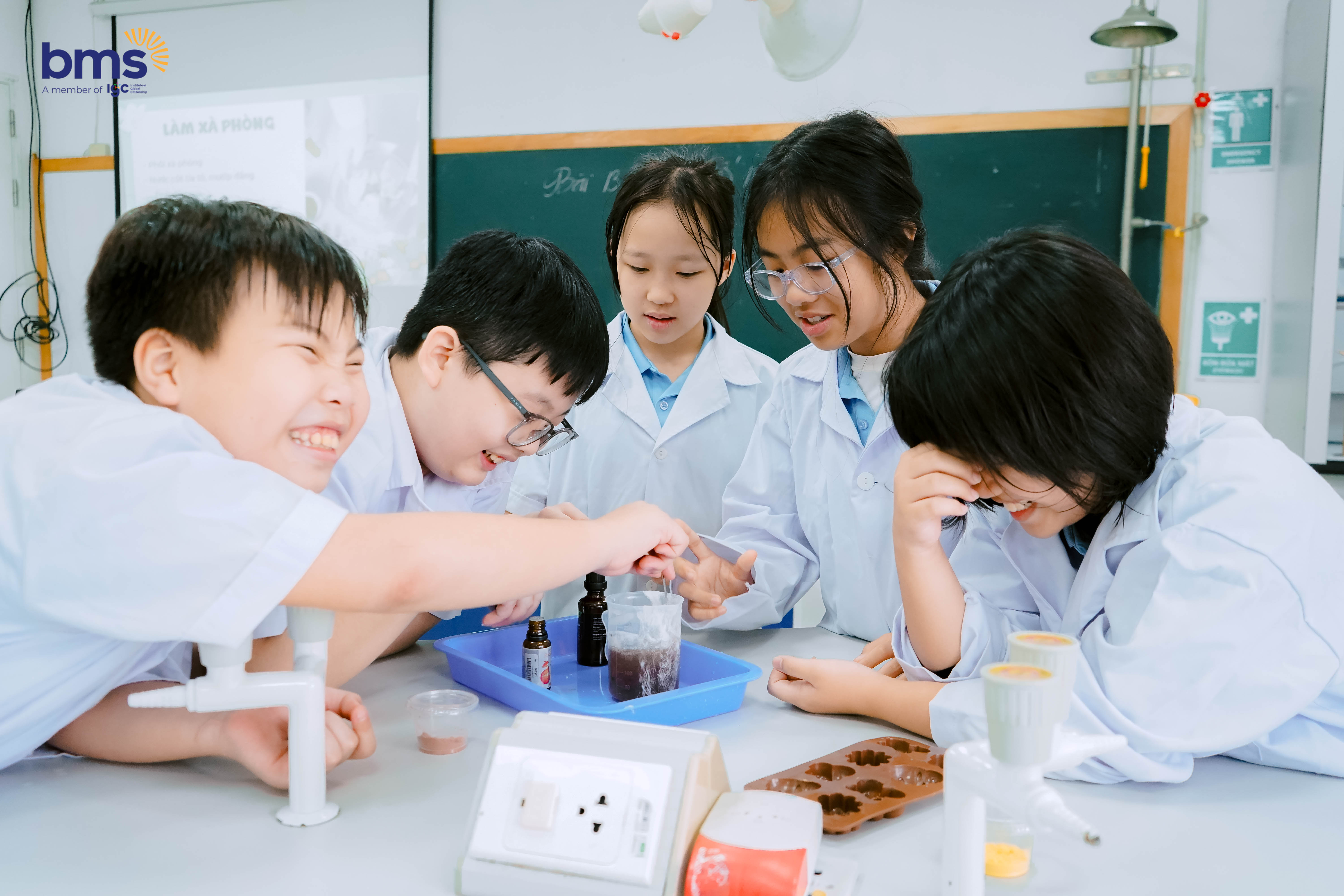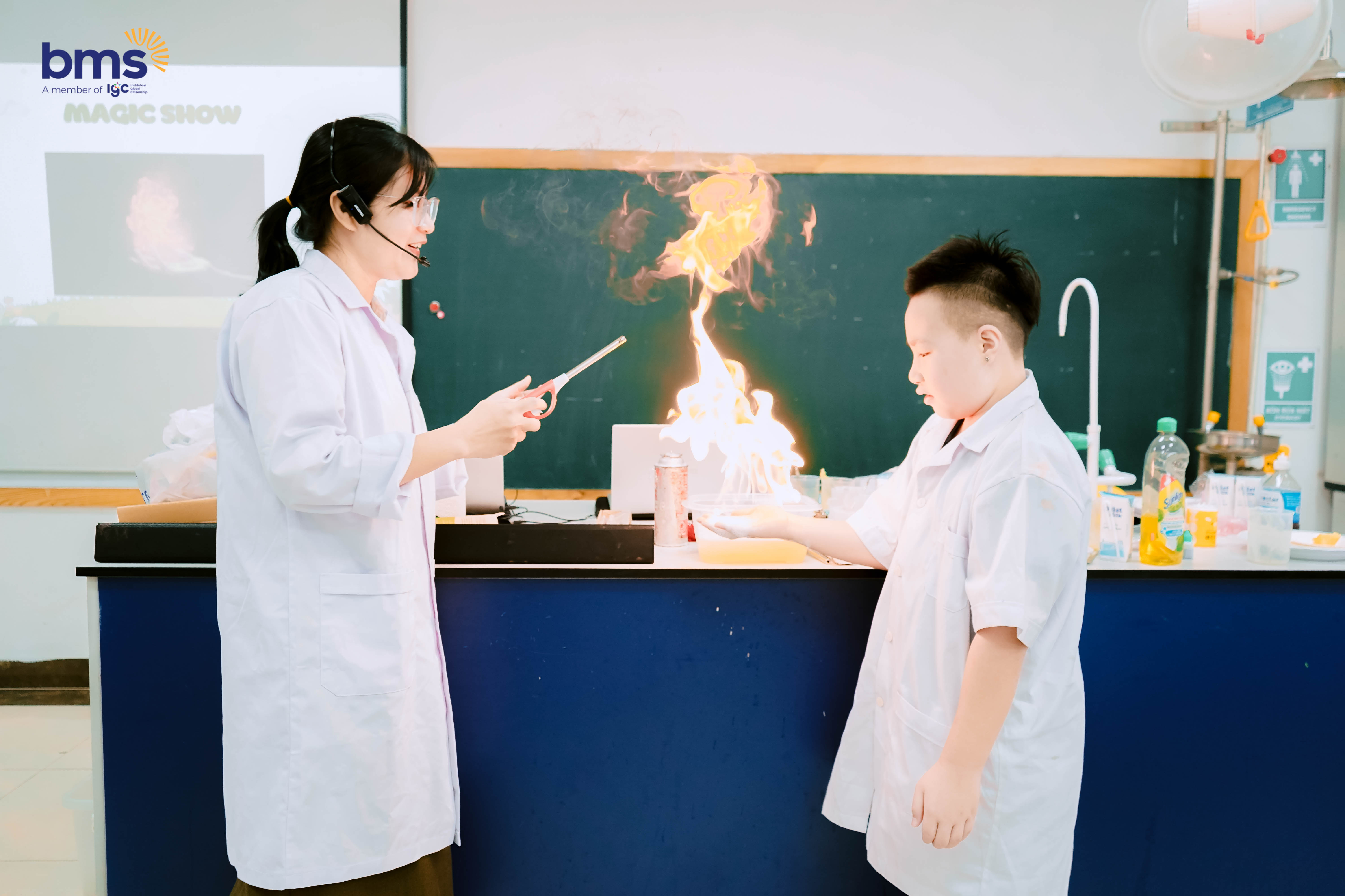 Trong phòng khoa học, các con tham gia “Magic Show: Bàn Tay Lửa”, nơi những hiện tượng tưởng như ma thuật được giải thích bằng khoa học. Các bạn còn tự tay làm sáp thơm và thử nghiệm các phản ứng an toàn. Mỗi hoạt động vừa vui vừa học, khơi dậy trí tò mò, khả năng quan sát và sự sáng tạo, giúp khoa học trở nên gần gũi và đầy cảm hứng.