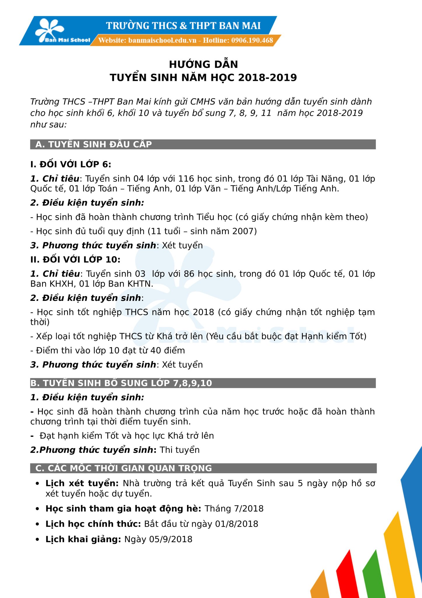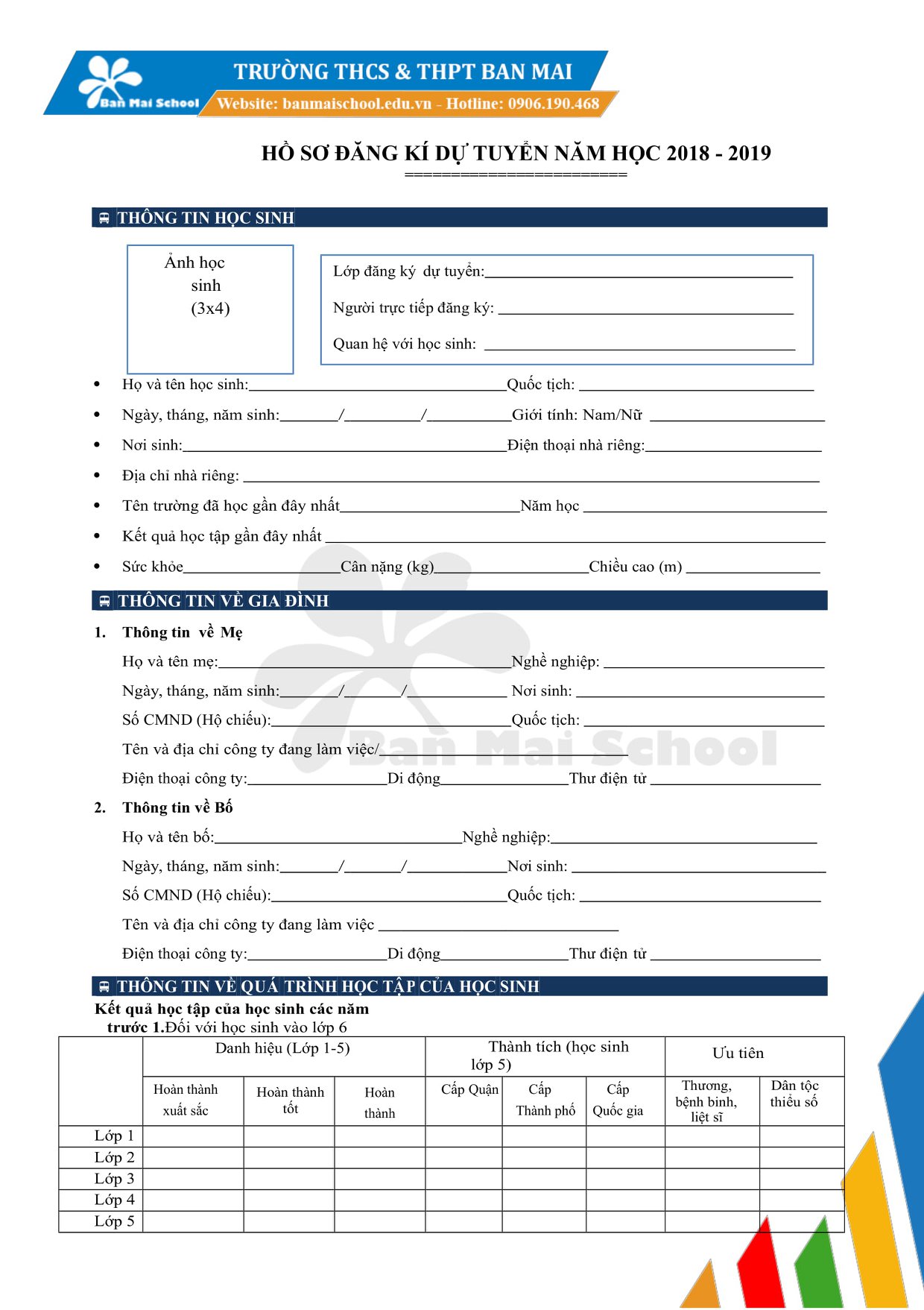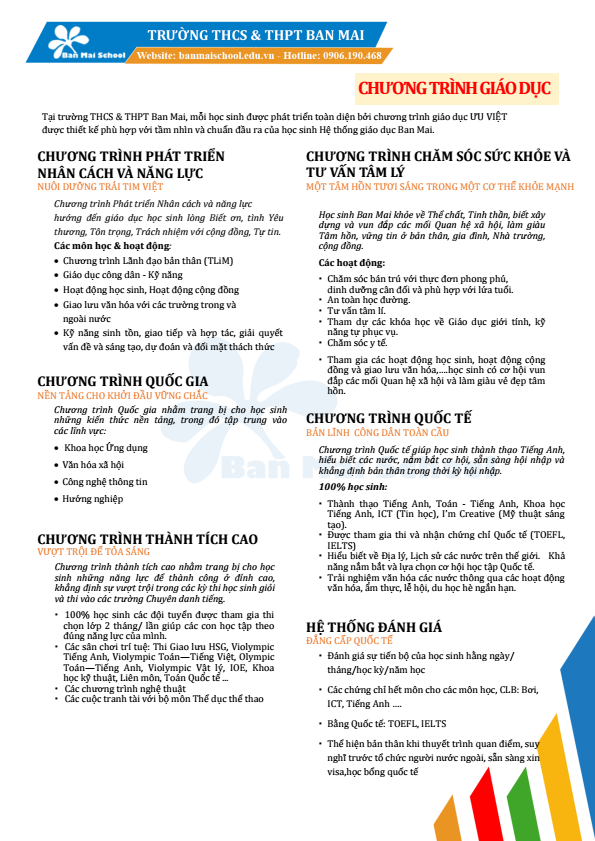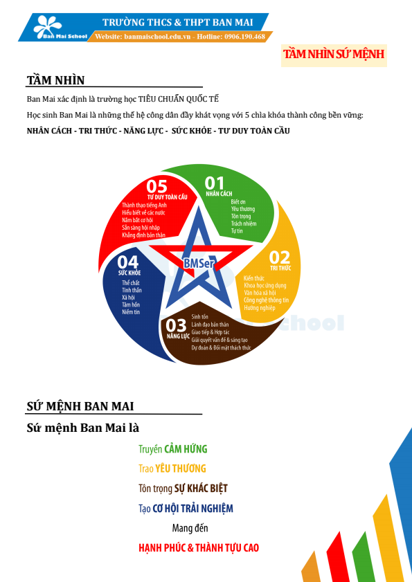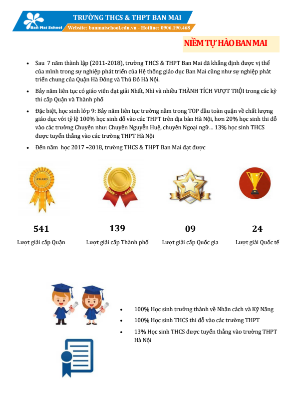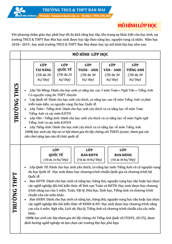 Trường THCS – THPT Ban Mai trân trọng giới thiệu thông tin School Profile năm học 2018 – 2019