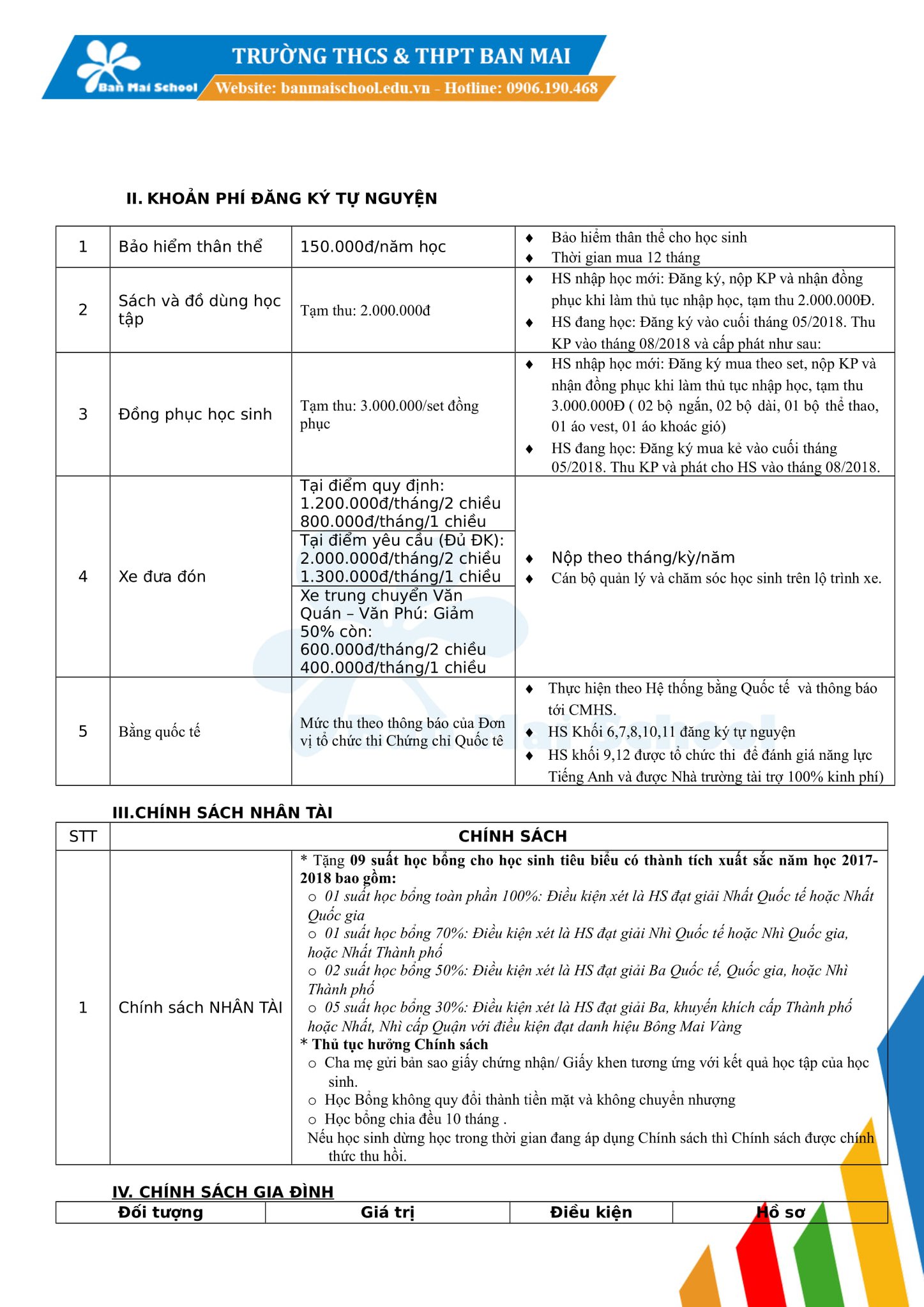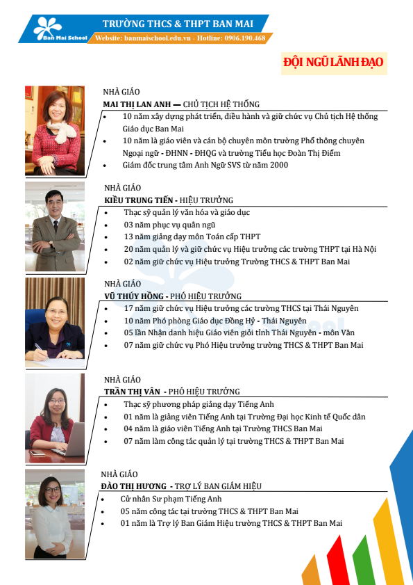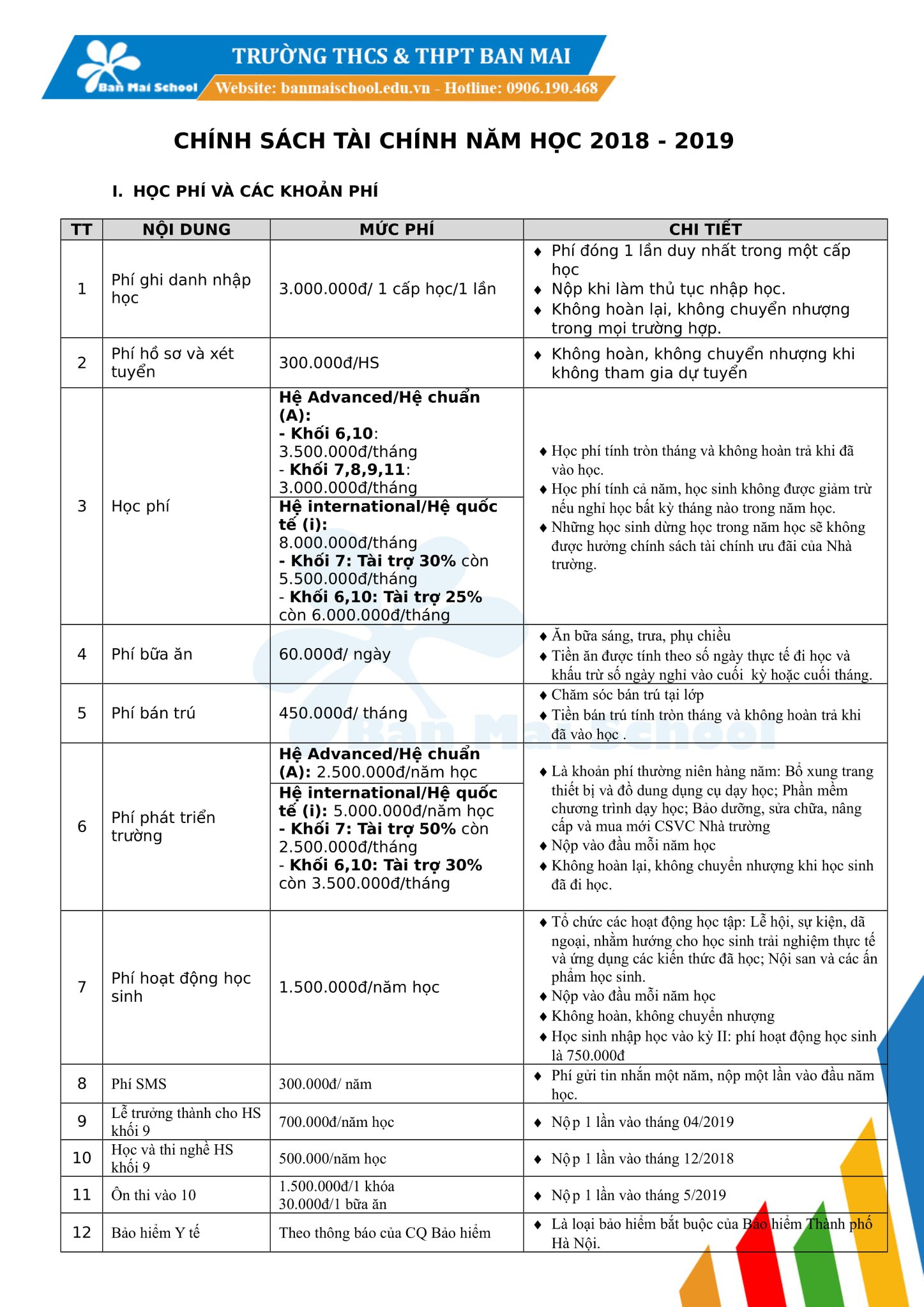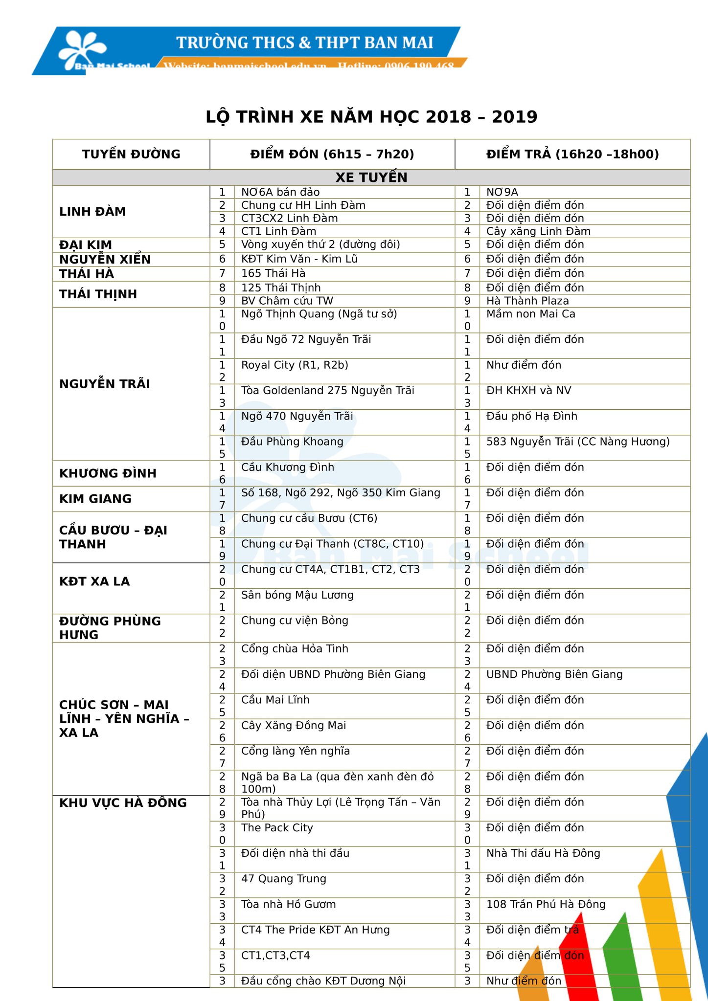 Trường THCS – THPT Ban Mai trân trọng giới thiệu thông tin School Profile năm học 2018 – 2019