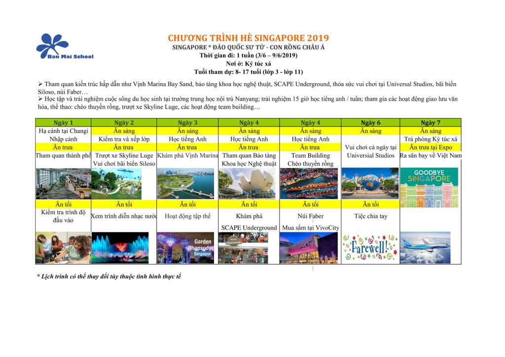 Đây là lần chương trình Hè được hợp tác với các trường tại 7 quốc gia: Thailand, Singapore, Philippines, New Zealand, Canada, England, USA. Thông tin các chương trình như sau:
