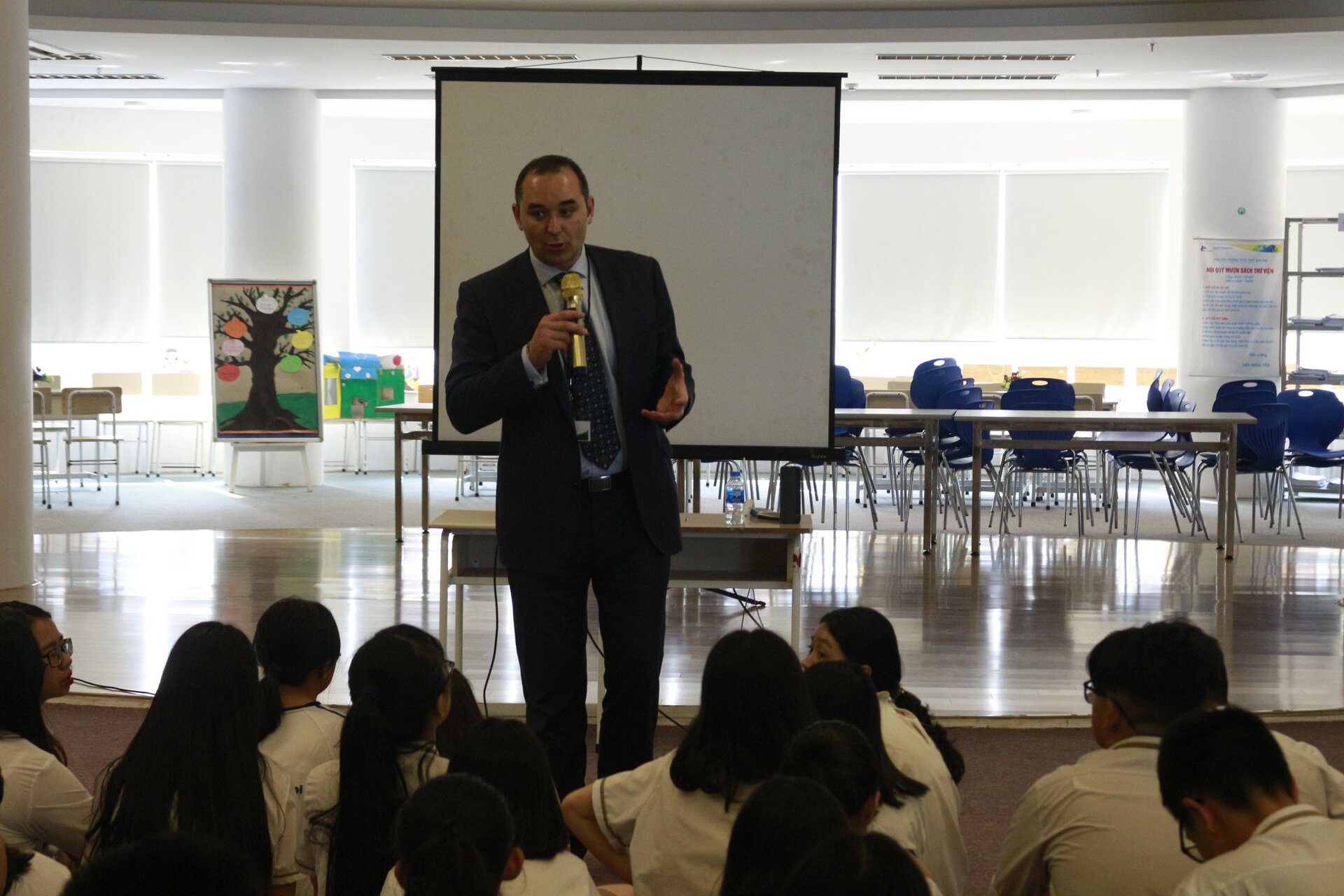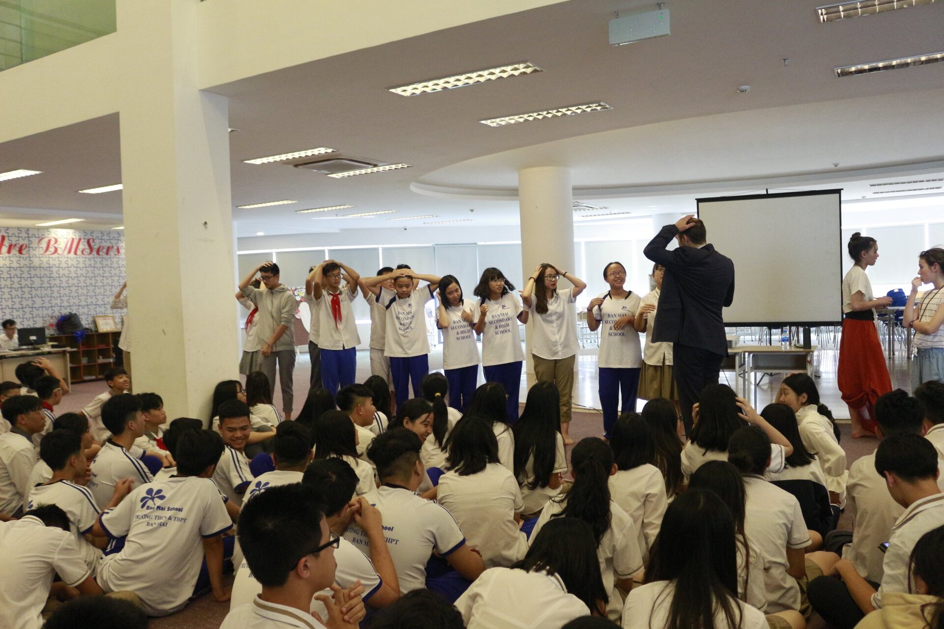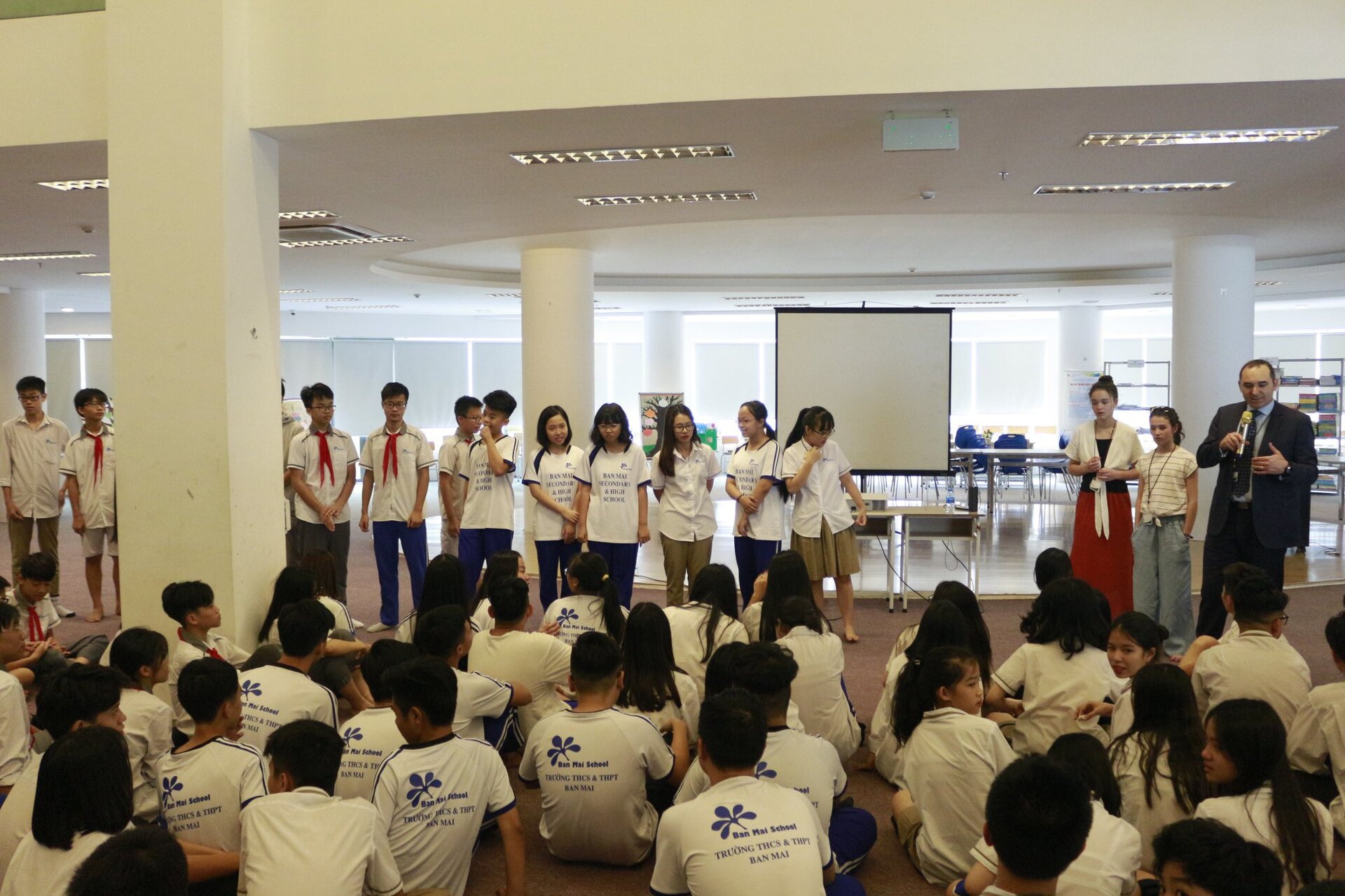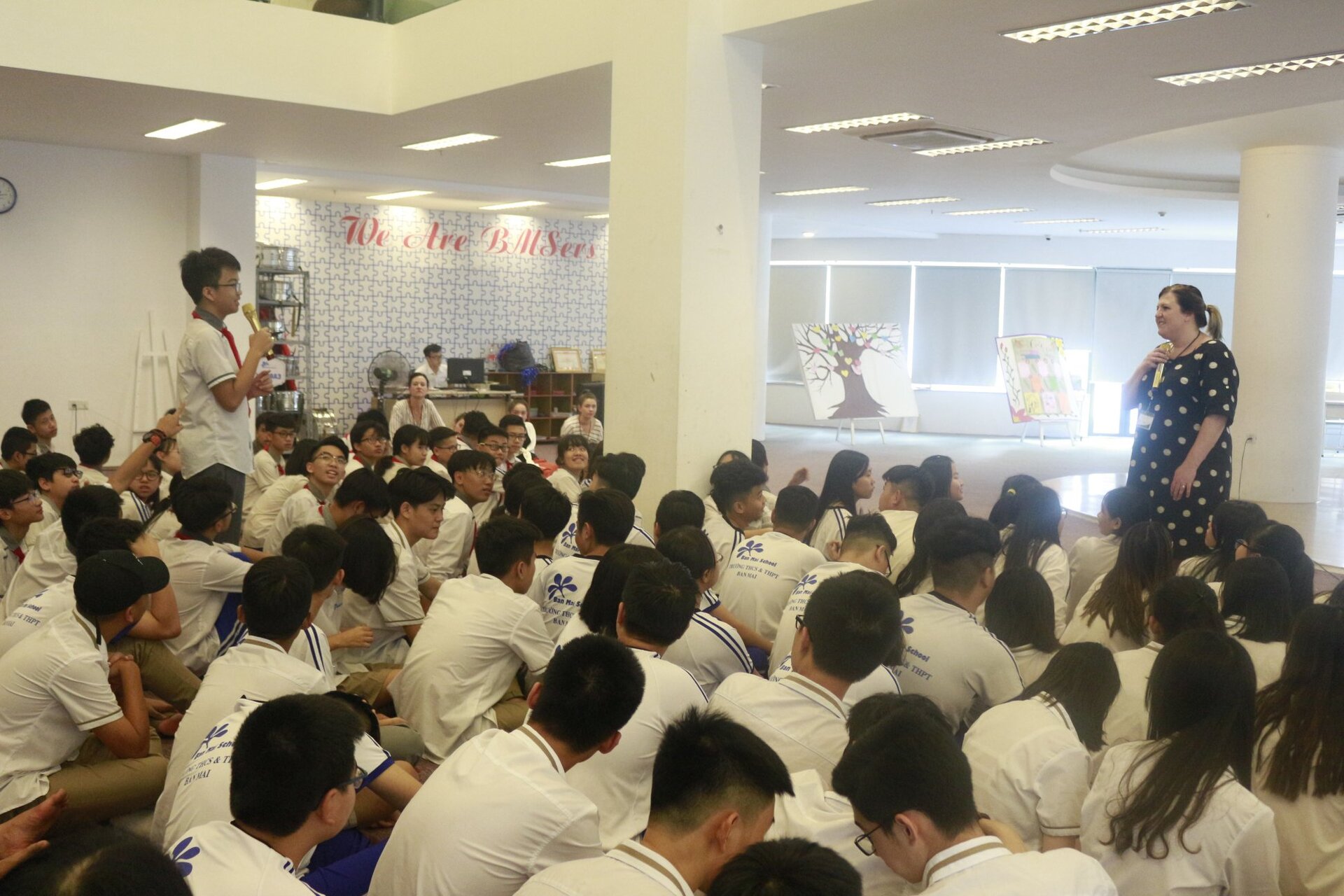 Chiều cùng ngày, Các Thầy Cô và các bạn học sinh đã có buổi giao lưu với BMsers của cả khối THCS &THPT. Các bạn học sinh Ban Mai vô cùng hào hứng khi được trò chuyện, giới thiệu với các Thầy cô về đất nước Việt Nam, về trường Ban Mai và về chương trình học của mình.