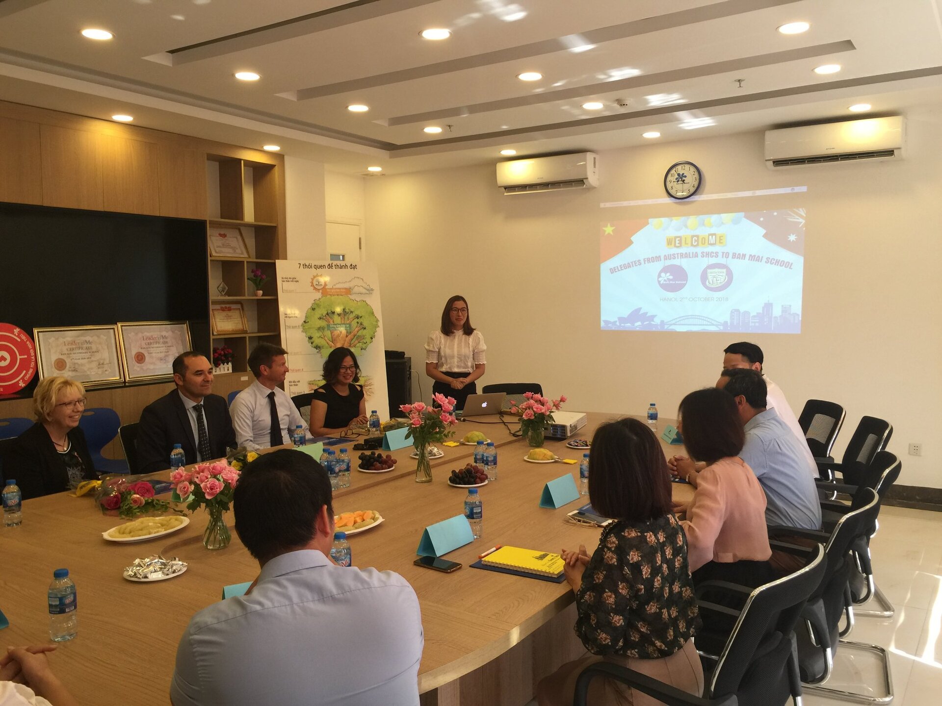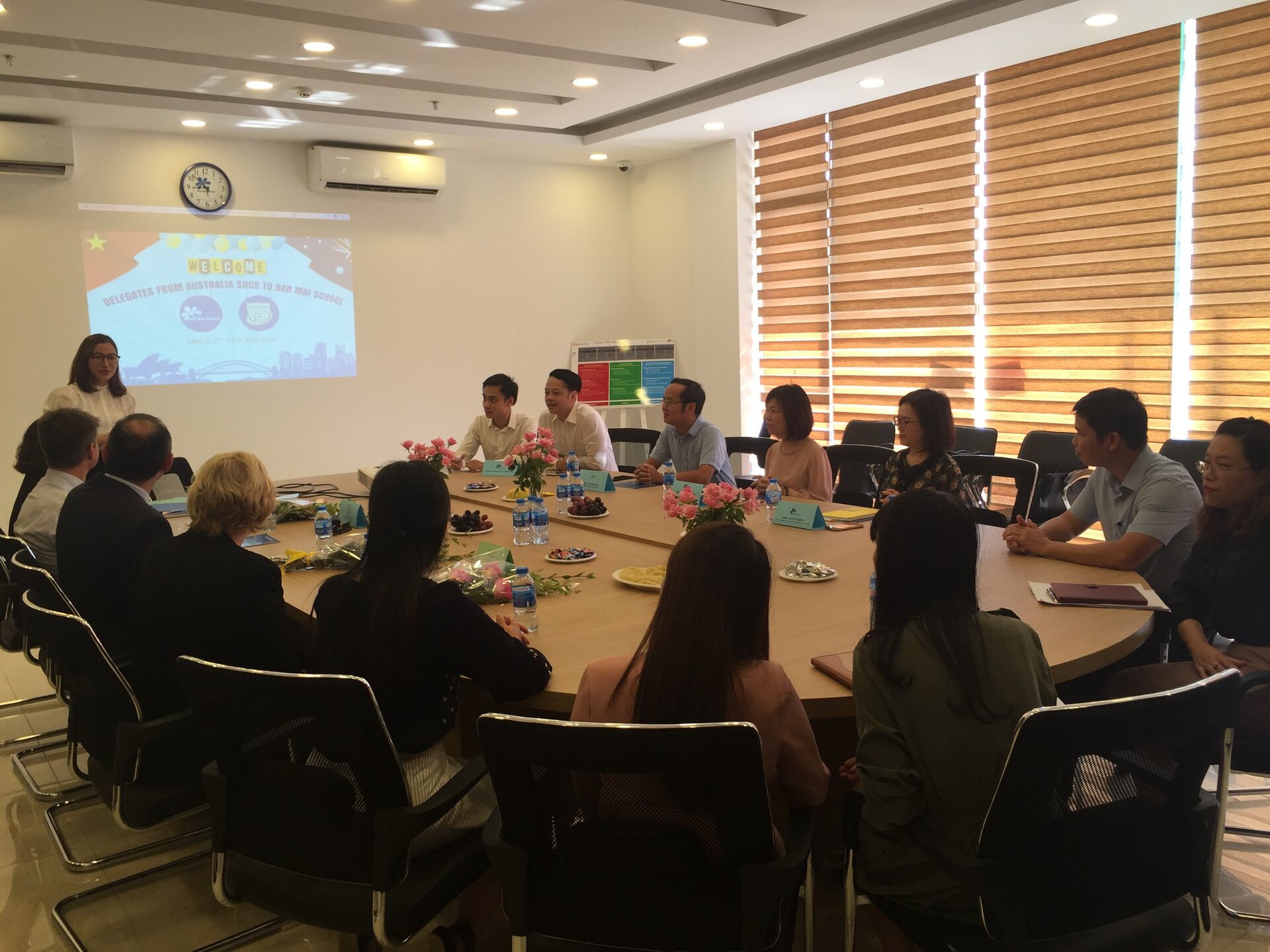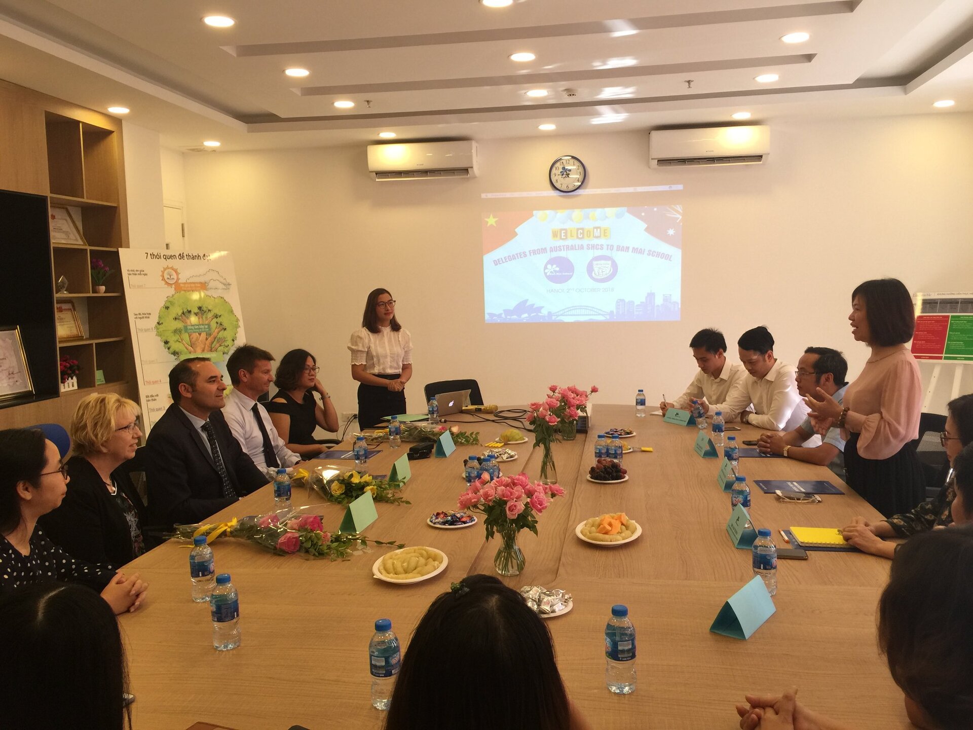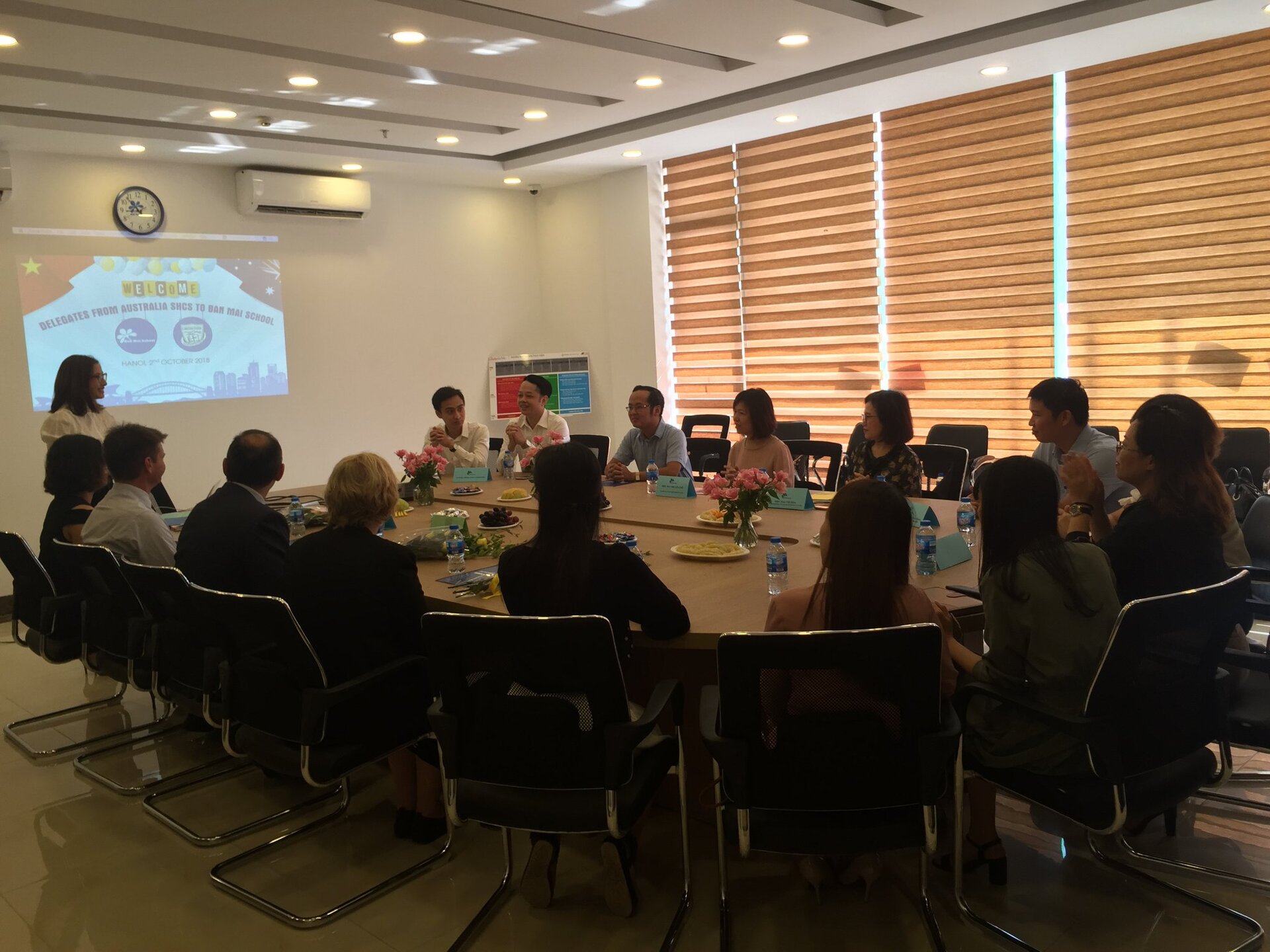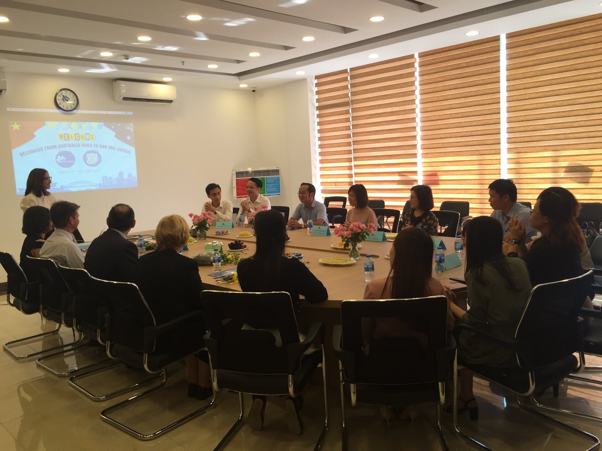 Đây là đoàn trường giao lưu đầu tiên trong năm học mới và khởi đầu cho một mối quan hệ QUAN TRỌNG của Nhà trường trong tương lai: Bàn bạc hợp tác phát triển các chương trình giáo dục lâu dài; Trao đổi Giáo viên, học sinh, các chương trình giữa 2 trường: Khoa học, Tiếng Anh, Sáng kiến kinh nghiệm; Chia sẻ, trao đổi kinh nghiệm về Quản lý giáo dục, xây dựng phát triển Nhà trường; Tổ chức các Hội thảo về Phương pháp giáo dục hiện đại; Xây dựng mô hình và môi trường học tập, kỹ năng giảng dạy; Tạo cơ hội du học cho HS Ban Mai học cấp THPT tại trường SHCS và ĐH ở Úc.