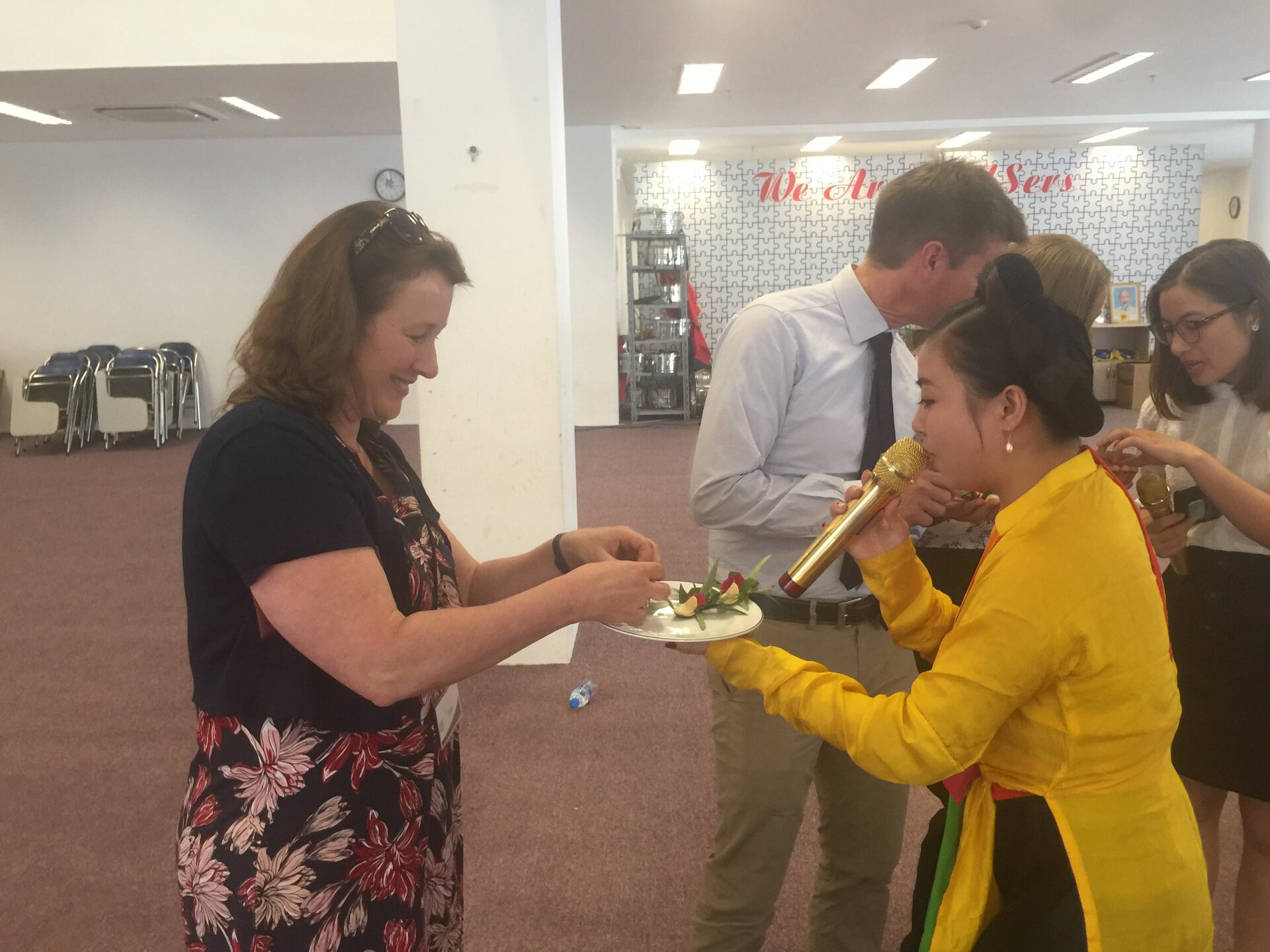 Trong buổi giao lưu, các Thầy Cô đến từ nước Úc đã được chia sẻ và giới thiệu về văn hóa Việt Nam thông qua tiết mục hát Quan họ Bắc Ninh với tích “Mời Trầu”. Thêm một lần nữa, các Thầy Cô đoàn Trường SHCS dành thêm những lời ca ngợi, ngưỡng mộ khi được biết Quan họ Bắc Ninh đã được UNESCO công nhận là di sản văn hoá phi vật thể đại diện của nhân loại.