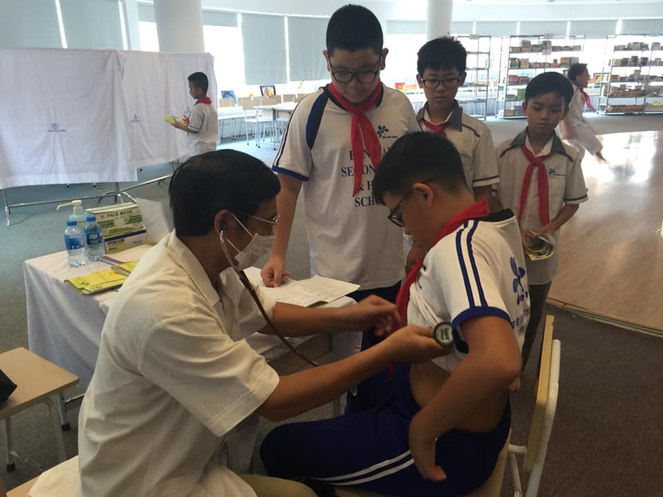 Sức khỏe là một trong 5 chìa khóa quan trọng (cùng với Nhân cách – Tri thức –Năng lực – Tư duy toàn cầu) luôn được Ban Giám hiệu Nhà trường đặc biệt quan tâm. Việc tổ chức khám sức khoẻ định kỳ cho học sinh đã được Nhà trường duy trì và thực hiện thường xuyên vào đầu năm học.