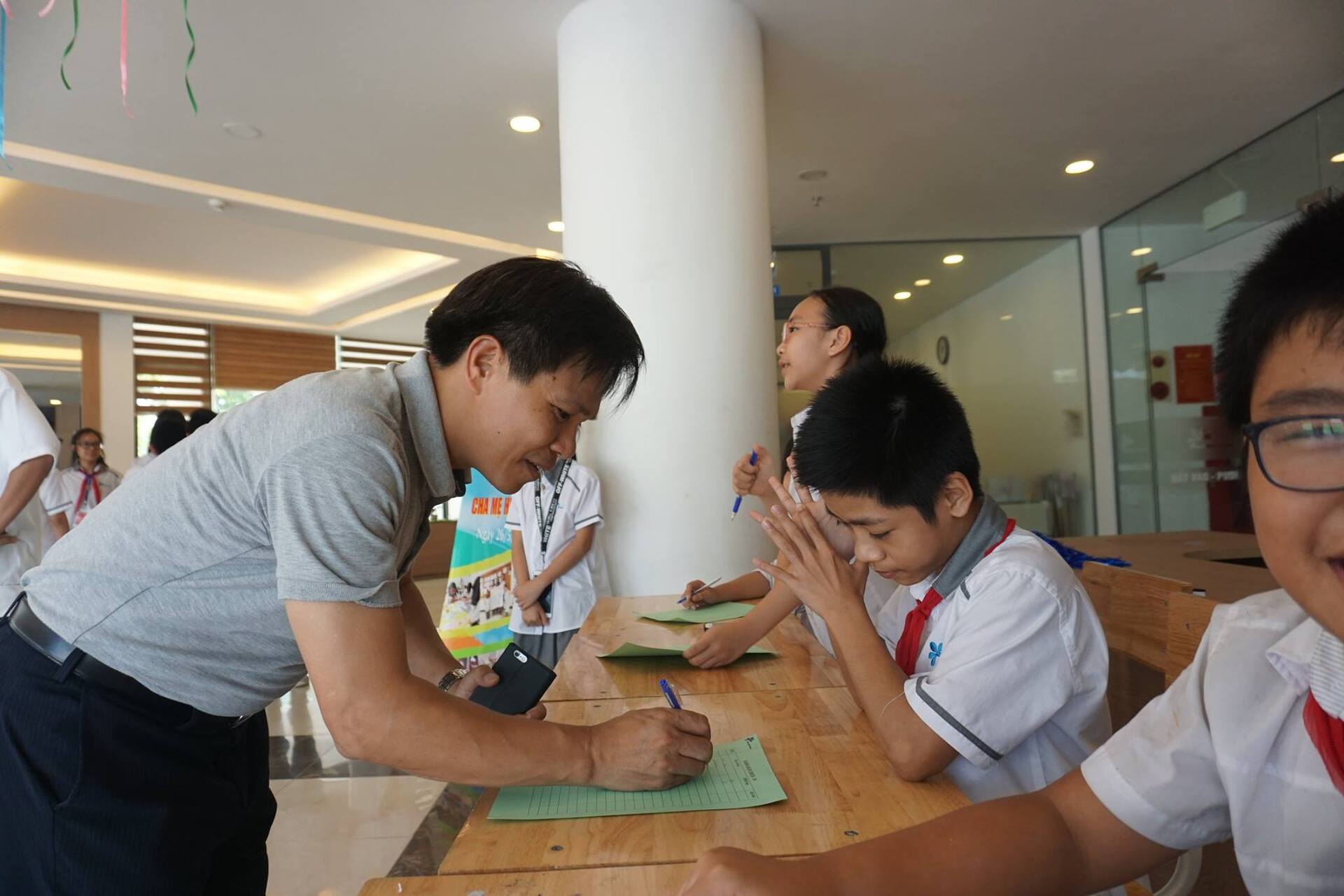 Góc Lãnh đạo dẫn Tour: Mỗi học sinh trở thành một Hướng dẫn viên du lịch, dẫn các Cha Mẹ tham quan các góc học tập, giới thiệu về các sản phẩm sáng tạo của học sinh Ban Mai đã tự tay chuẩn bị