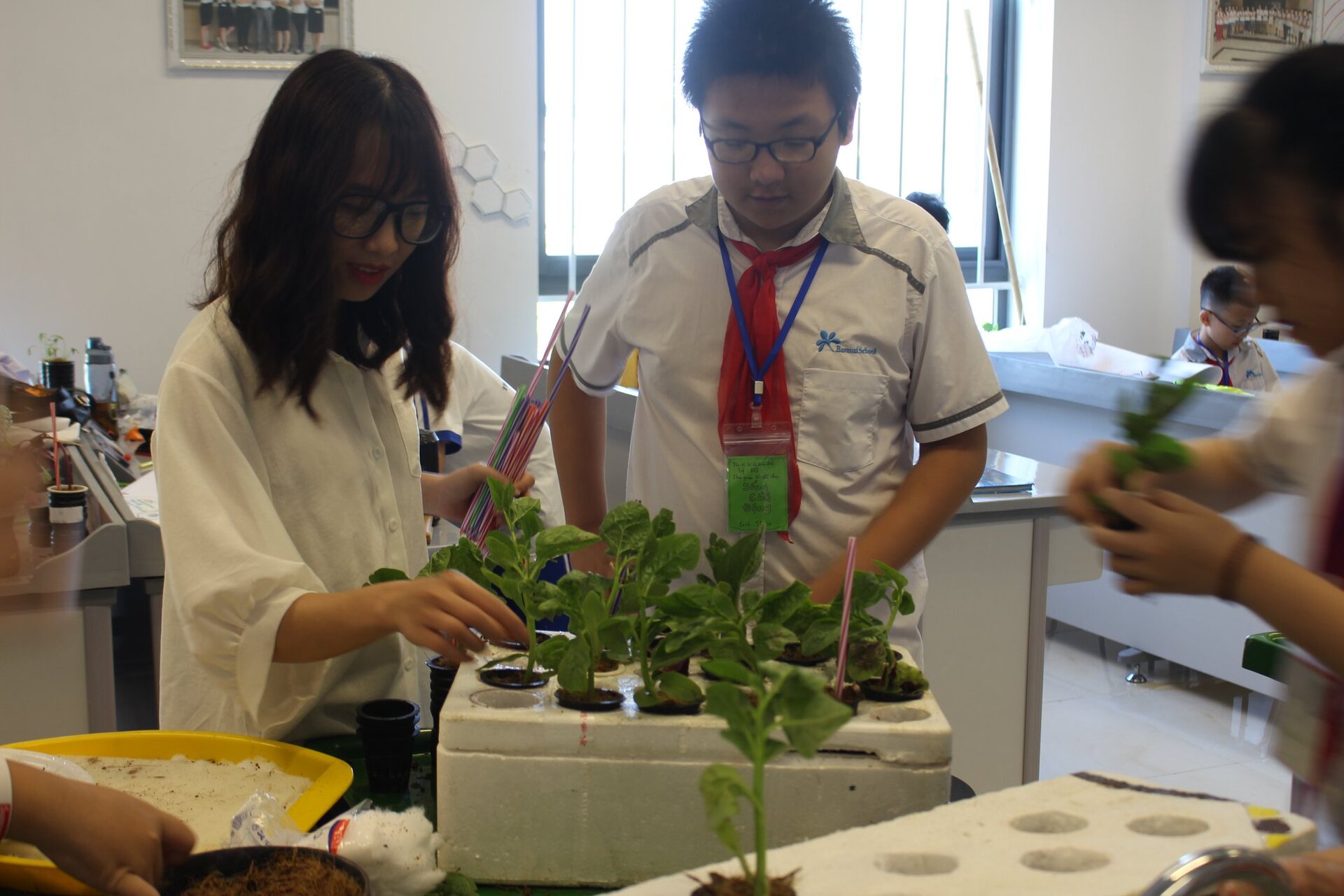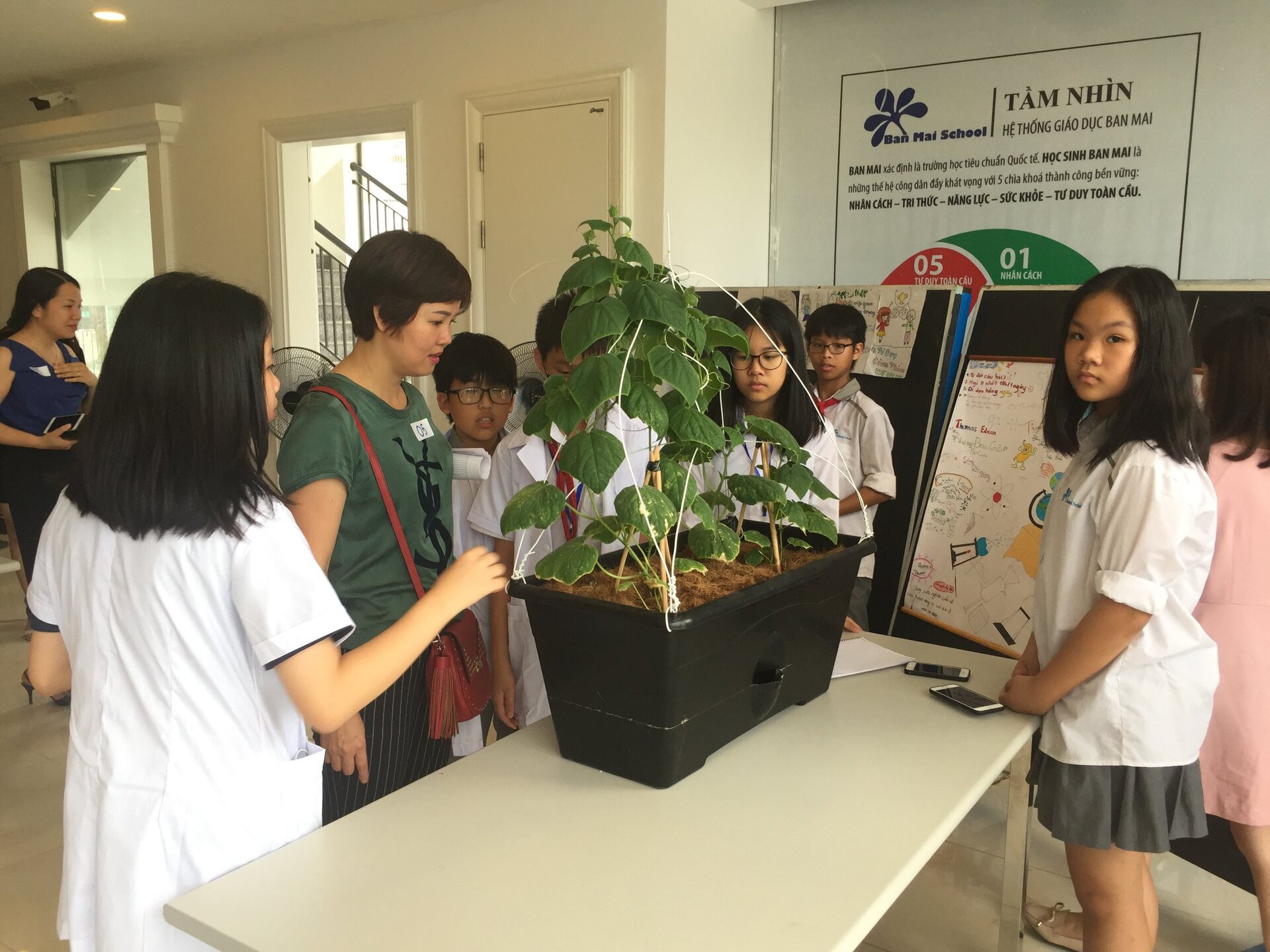 Góc Lãnh đạo STEM: Các học sinh trong Câu lạc bộ STEM Ban Mai đã giới thiệu đến Cha Mẹ về các dự án nghiên cứu của CLB trong năm học vừa qua: dự án trồng cây thủy canh, dự án làm túi nilon từ vỏ khoai tây.