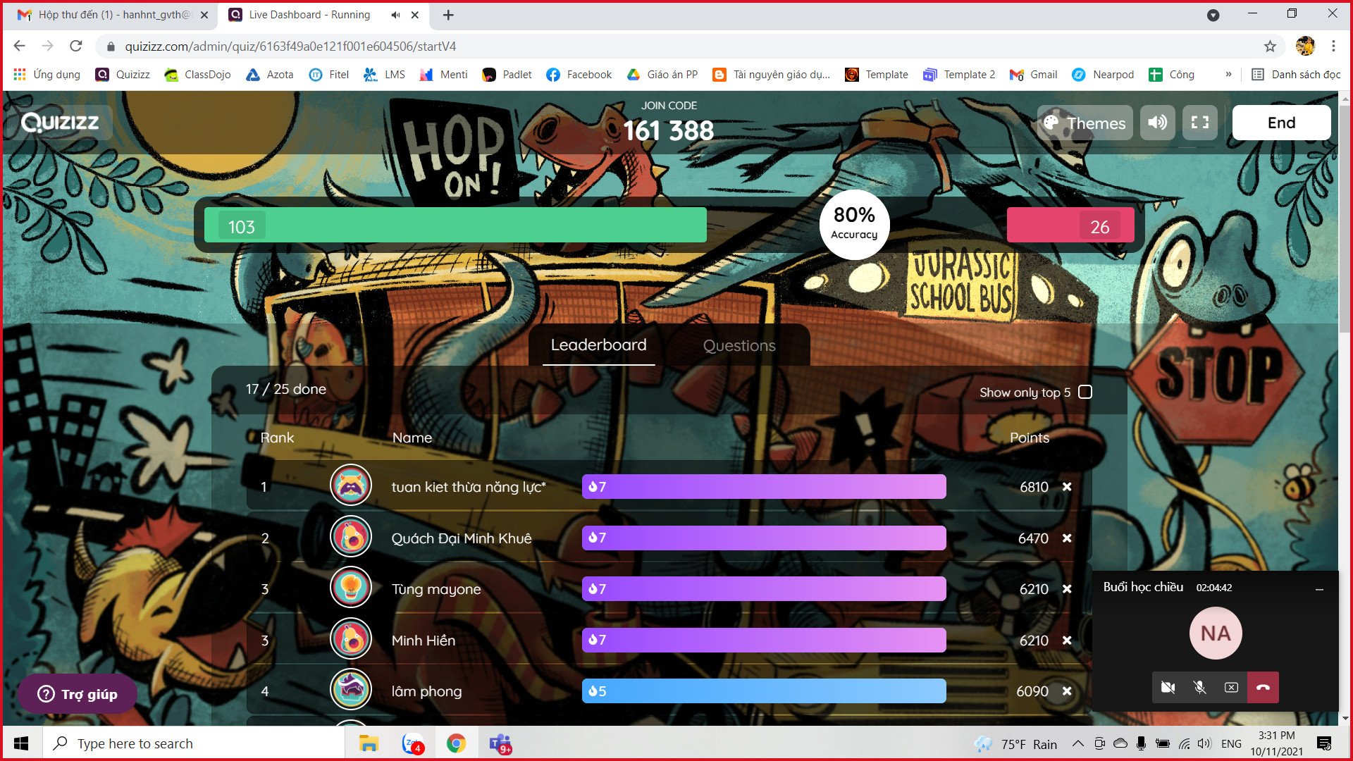 Tôi rất an tâm khi thấy con tiếp thu tốt kiến thức cô giảng dạy với tâm thế vào tiết học vô cùng hào hứng và thích thú. Cảm ơn các cô luôn truyền cảm hứng và động lực cho các con ạ. (PHHS 4A1) | Một trong những nhược điểm của dạy học online đó là hạn chế tương tác, học sinh dễ cảm thấy nhàm chán. Nhưng các trò chơi sẽ giúp khắc phục những điều đó. Trong mỗi tiết học, các thầy cô đều linh hoạt thiết kế các trò chơi học tập, có thể là trên Power point với các hình thức khác nhau, cũng có thể là chơi trực tuyến qua các trang quizizz, blooket,….