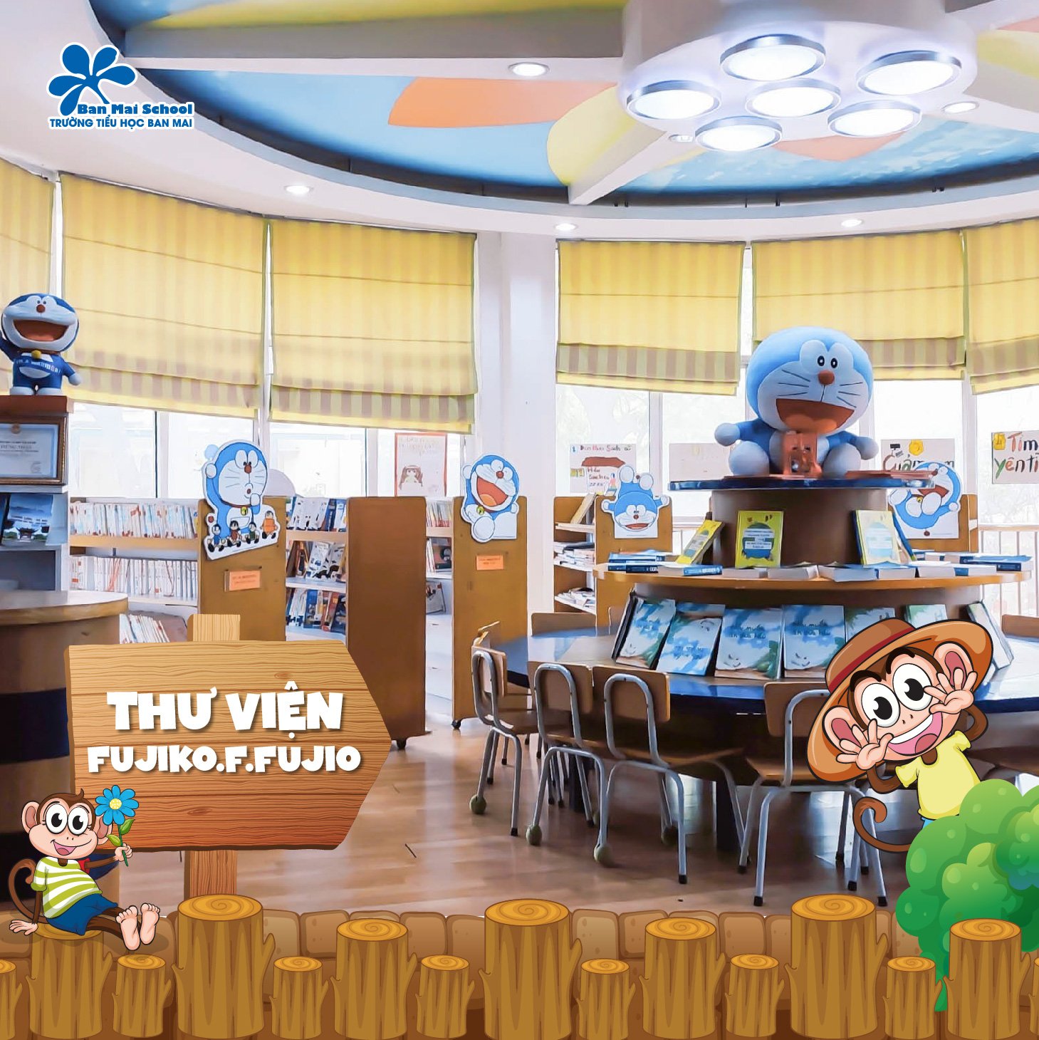 Tác giả của bộ truyện Doraemon, họa sĩ Fujiko F. Fujio, từng tới thăm Việt Nam vào năm 1996 và thành lập quỹ học bổng Doraemon. Năm 2010, thư viện mang tên Fujiko F. Fujio do quỹ Doraemon xây dựng tại Tiểu học Ban Mai. Đến nay, mô hình thư viện đã được nhân rộng lên 8 cơ sở ở Lào Cai, Bạc Liêu, Hà Nam, Lai Châu..
