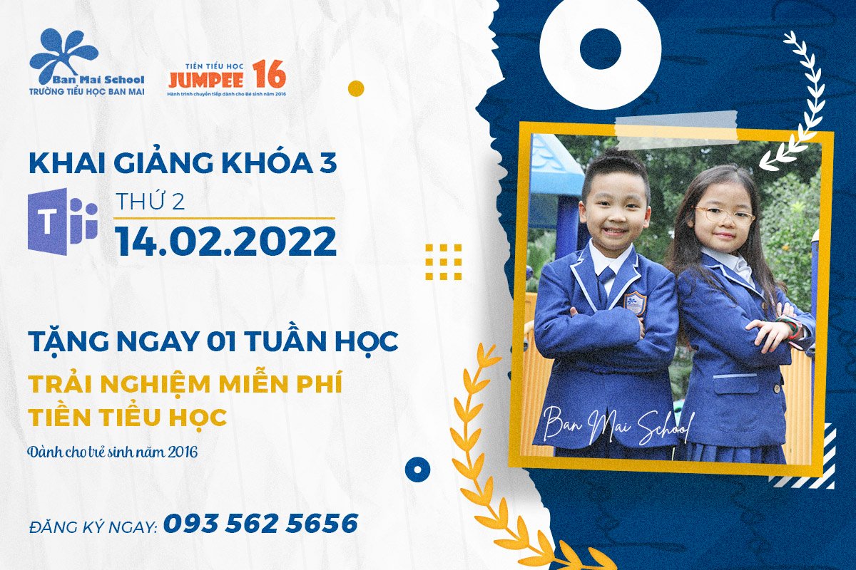 ➡ Jumpee 16 là từ khóa đang nhận được rất nhiều sự quan tâm của các bố mẹ có con sinh năm 2016. Chính thức triển khai từ năm học 2021 – 2022, Jumpee 16 đã trở thành một trong những thương hiệu hàng đầu về giáo dục Tiền Tiểu học và là niềm tự hào của Hệ thống Giáo dục Ban Mai.