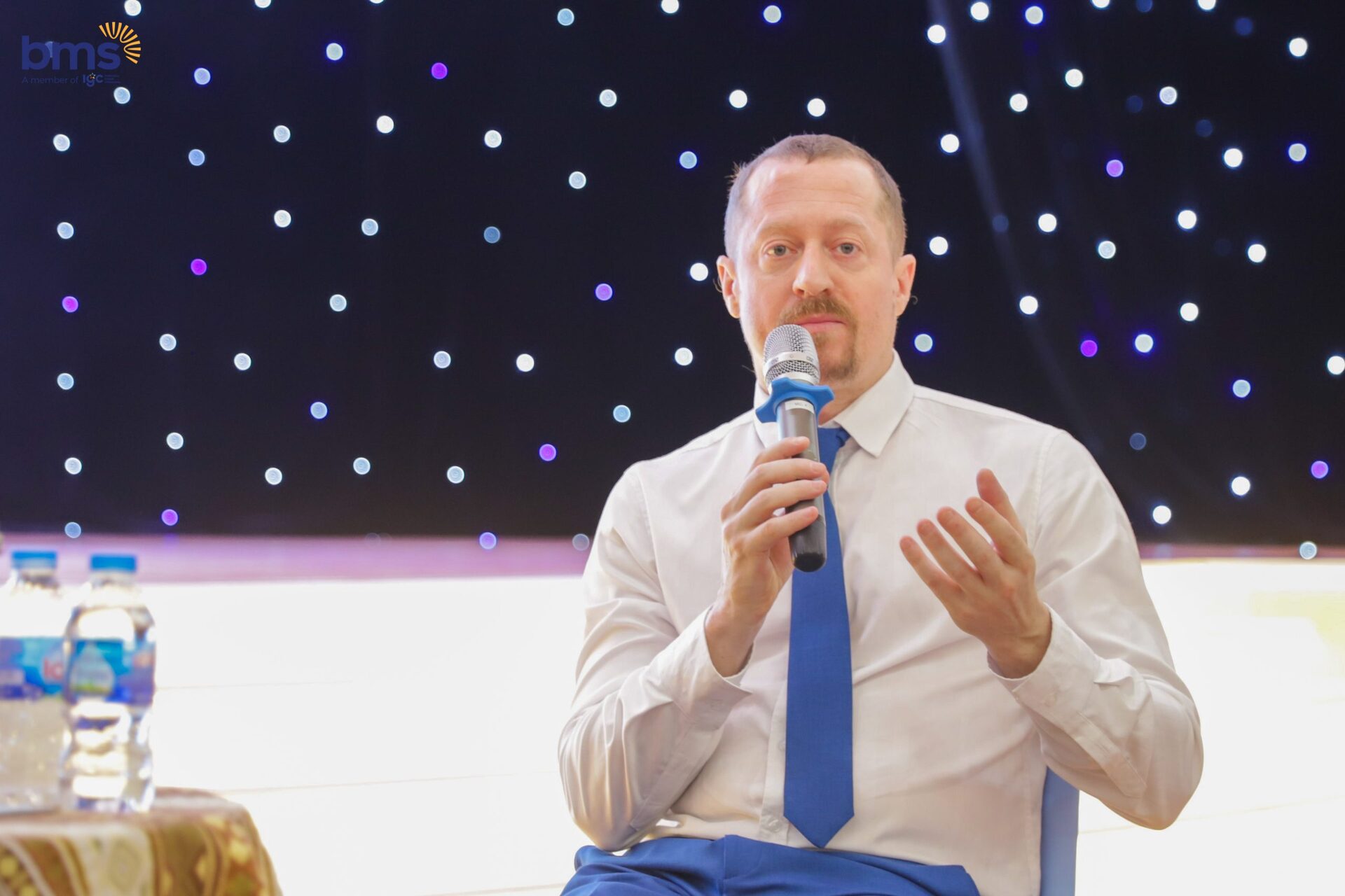 Bên cạnh những chia sẻ gần gũi của cô Phan Hồ Điệp về phương pháp đồng hành cùng con, thầy Mark Shevlane, Giám đốc học thuật, chương trình Quốc tế Cambridge đã đưa ra tư vấn chi tiết về lộ trình và những lợi ích về Chương trình Quốc tế Cambridge tại Ban Mai School dành cho các bậc phụ huynh.