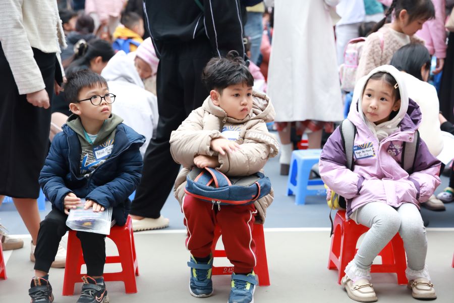 Ngay từ sớm, các bạn nhỏ cùng Cha Mẹ đã có mặt tại trường để chuẩn bị cho một ngày quan trọng. Không khí tại trường rộn ràng và náo nhiệt hơn bao giờ hết với sự hiện diện của hàng trăm “sĩ tử nhí” đầy hào hứng và tự tin. Sự háo hức, bỡ ngỡ hiện rõ trên khuôn mặt các con khi lần đầu tiên tham gia một kỳ thi đặc biệt.