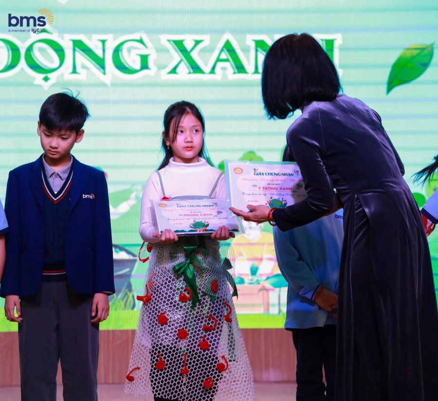 Tinh thần bảo vệ môi trường được BMSers truyền tải qua những bài thơ, điệu múa, câu vè tràn đầy cảm xúc. Mỗi tiết mục biểu diễn không chỉ là một phần thi, mà còn là lời nhắn gửi mạnh mẽ: "Tương lai xanh khởi đầu từ chính những hành động nhỏ bé hôm nay". Sự tự tin, sáng tạo và tâm huyết của các con đã chạm đến trái tim của thầy cô, cha mẹ và tất cả những người tham dự.