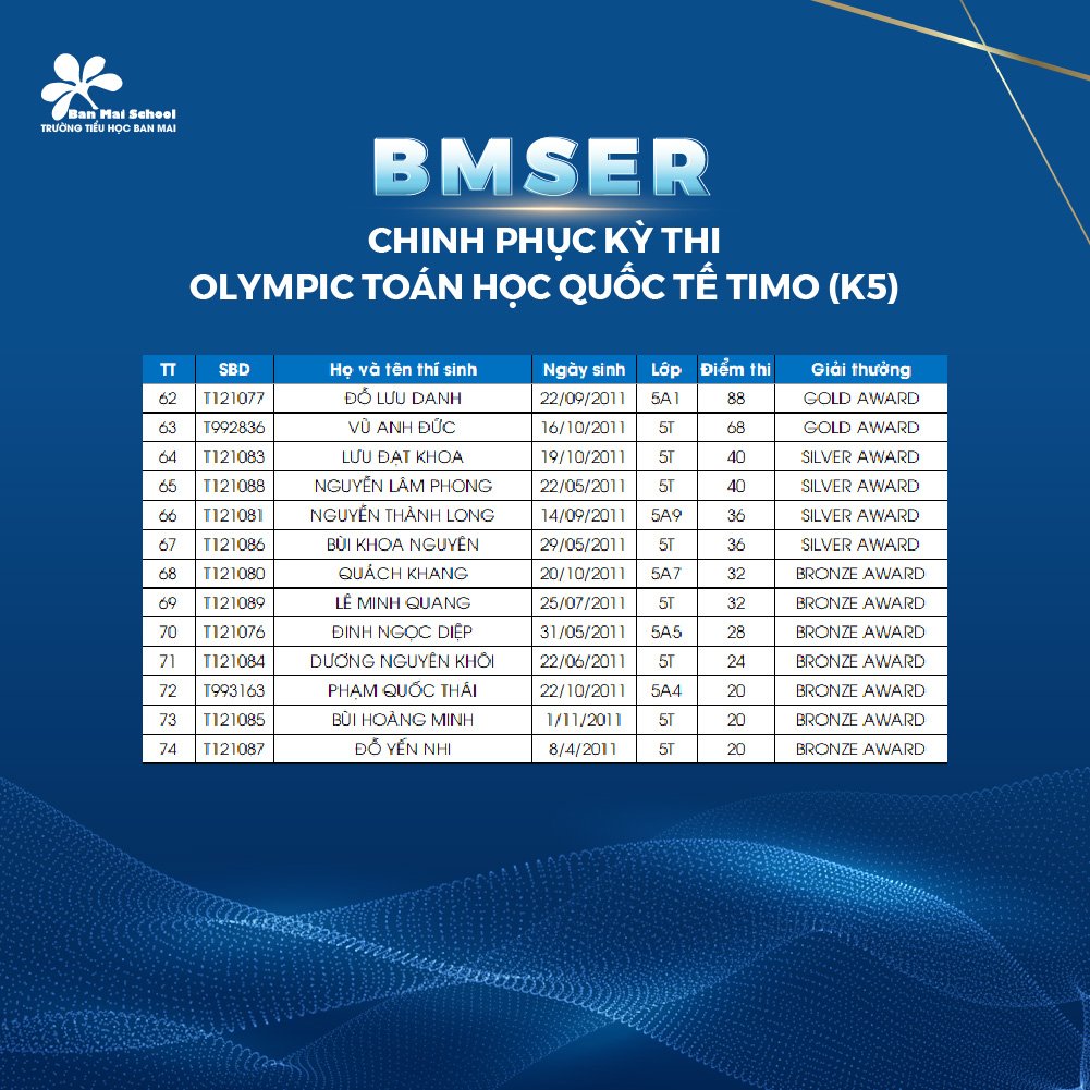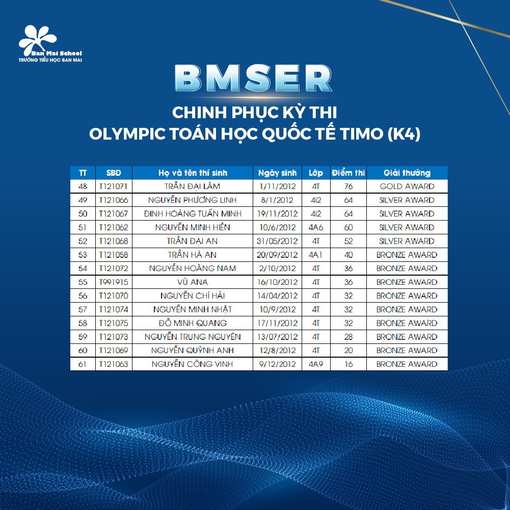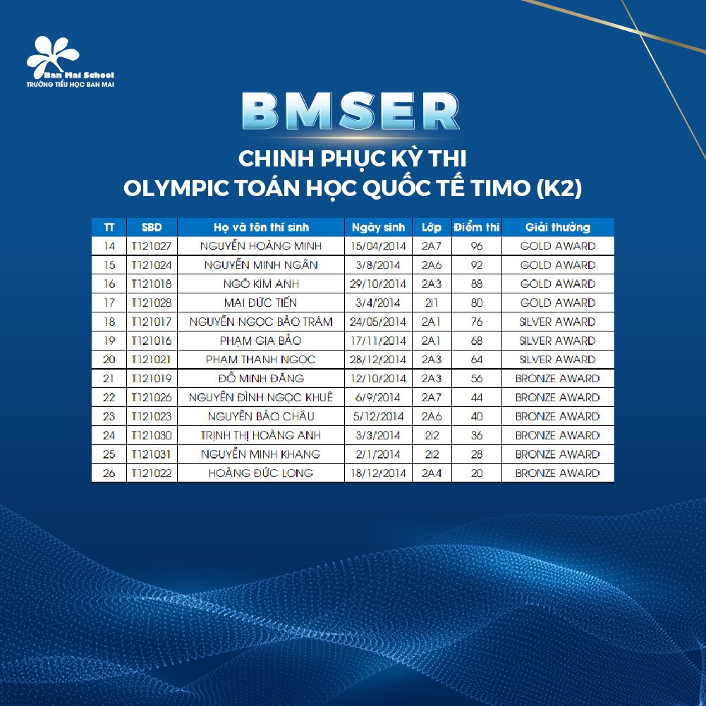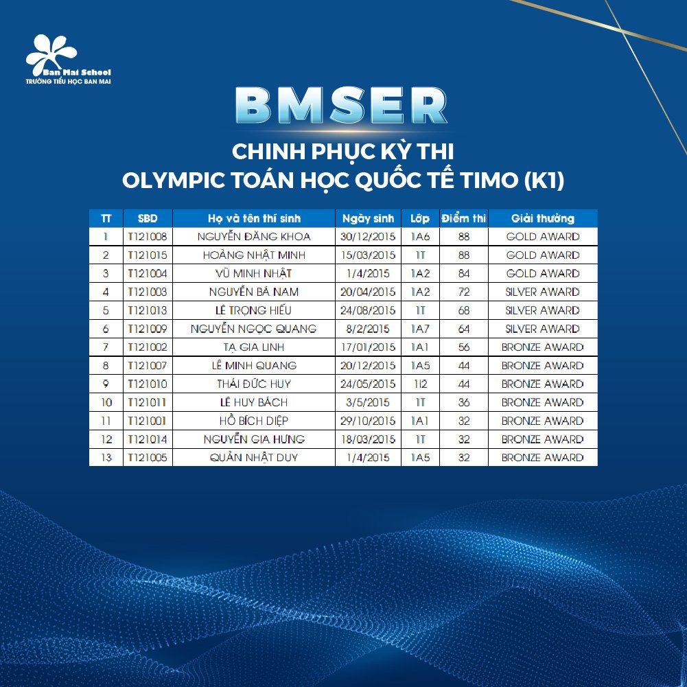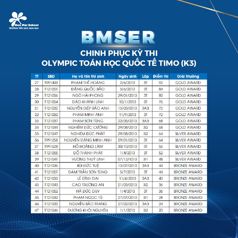 Chúc mừng BMSers đã cơ hội khám phá tiềm năng của chính mình và tạo được nhiều dấu ấn đậm nét. Thầy cô tự hào về các con, và chờ đón những thành tích tiếp theo trong học kỳ tới.