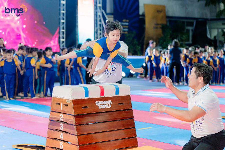 Chương trình bắt đầu bằng video tổng kết năm học, ghi nhận những thành quả đáng tự hào của thầy trò Trường Tiểu học Ban Mai trong suốt một năm học tập, rèn luyện và trưởng thành. Ngay sau đó, phần đồng diễn thể chất Nhật Bản sôi động đã “hâm nóng” không khí, tạo nên màn mở đầu ấn tượng, truyền tải năng lượng tích cực của các BMSers.