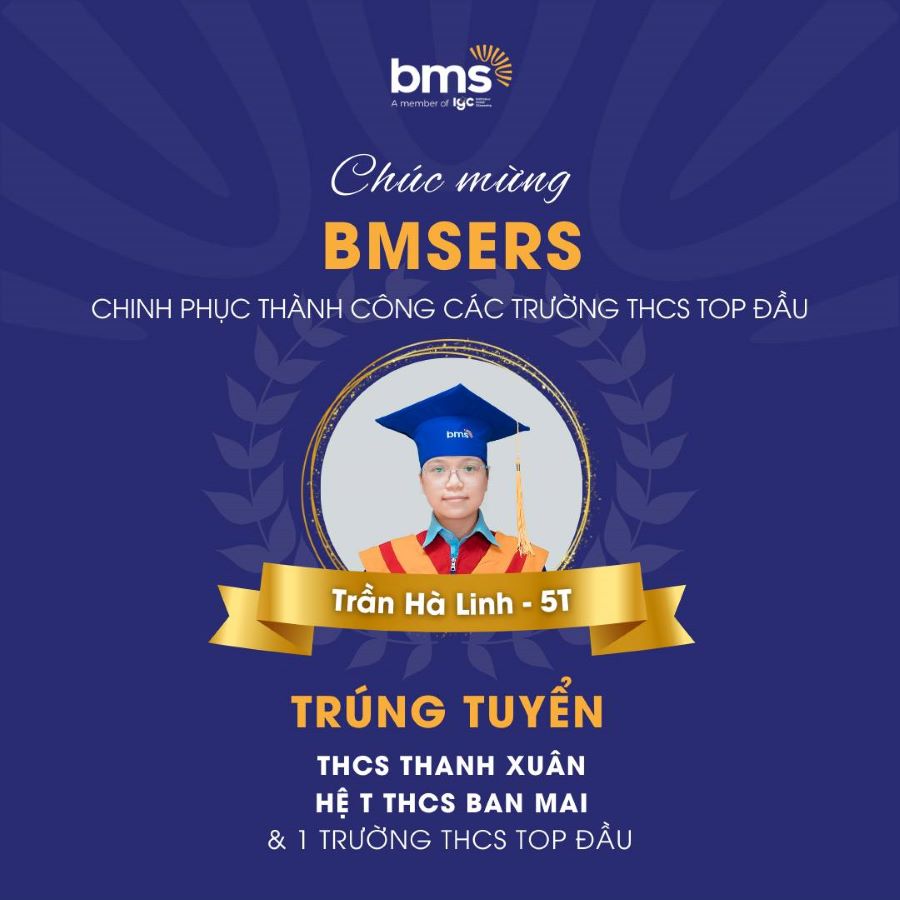Kỳ thi vào các trường THCS chuyên/chất lượng cao tại Hà Nội luôn là cuộc đua gay cấn với tỉ lệ cạnh tranh vô cùng cao. Dù vậy, với tài năng, sự tự tin và quyết tâm chinh phục thử thách, rất nhiều BMSers đã thành công chinh phục những ngôi trường top đầu: THCS Ngoại Ngữ, THCS Thanh Xuân, THCS Lê Lợi, THCS Nguyễn Tất Thành, Hệ Tài năng THCS Ban Mai...