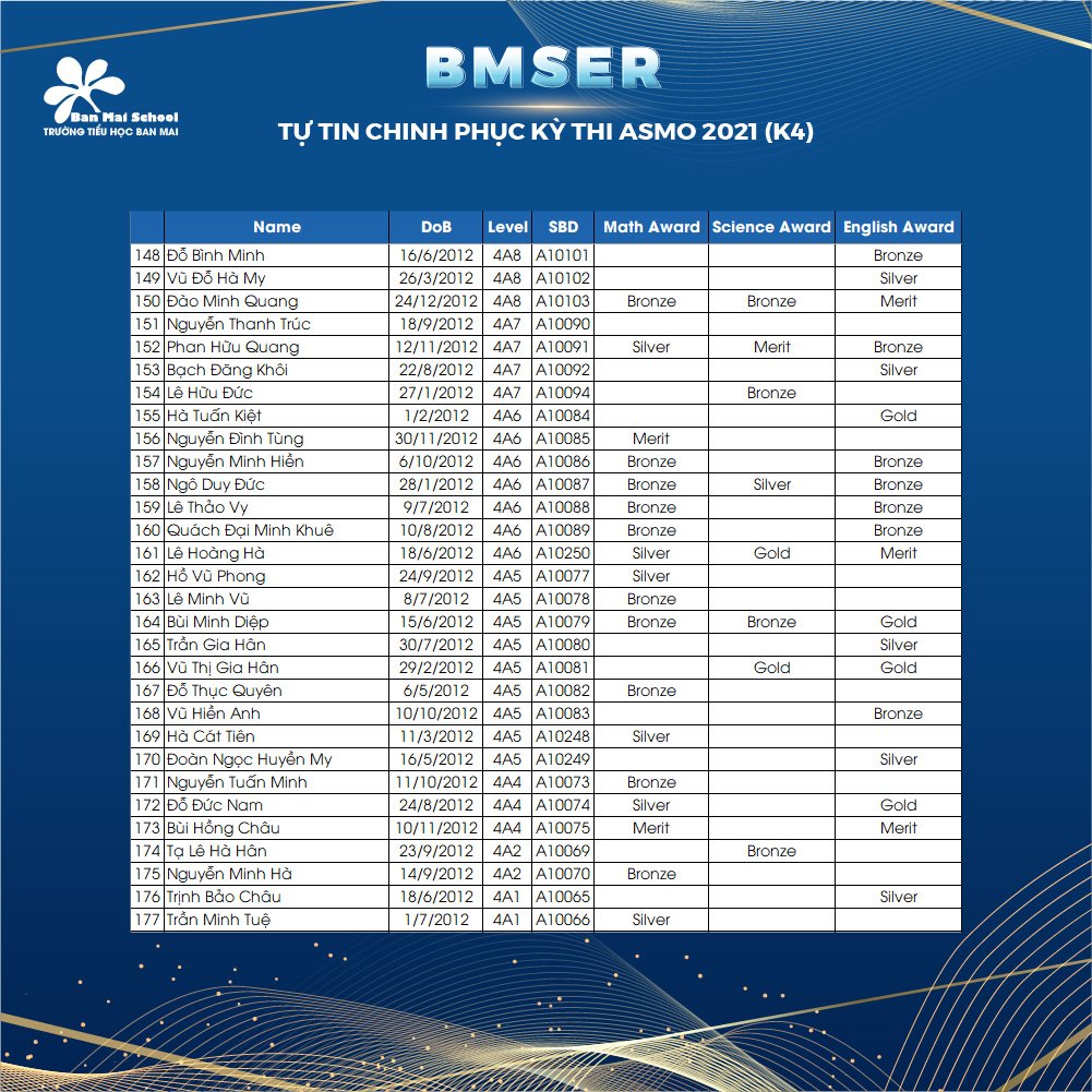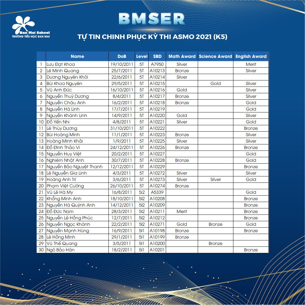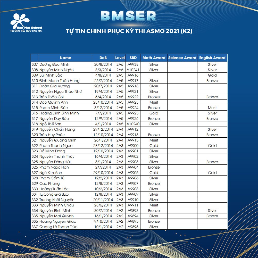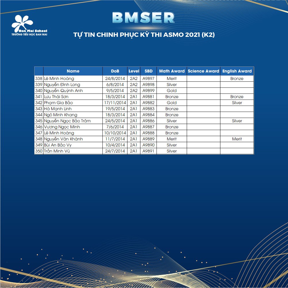 569 là tổng số giải thưởng mà BMSers đã giành được tại vòng 1 kỳ thi đánh giá năng lực Khoa học, Toán và Tiếng Anh toàn cầu ASMO.