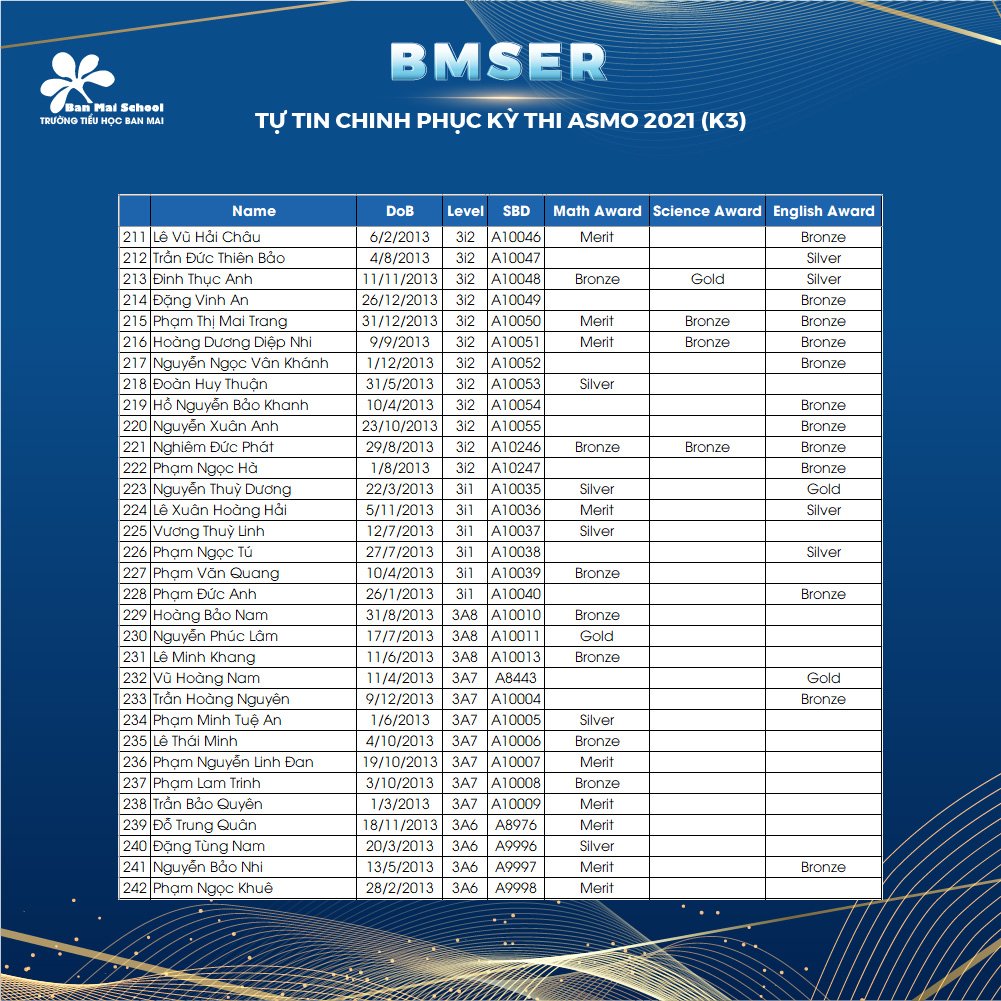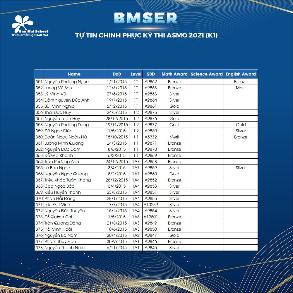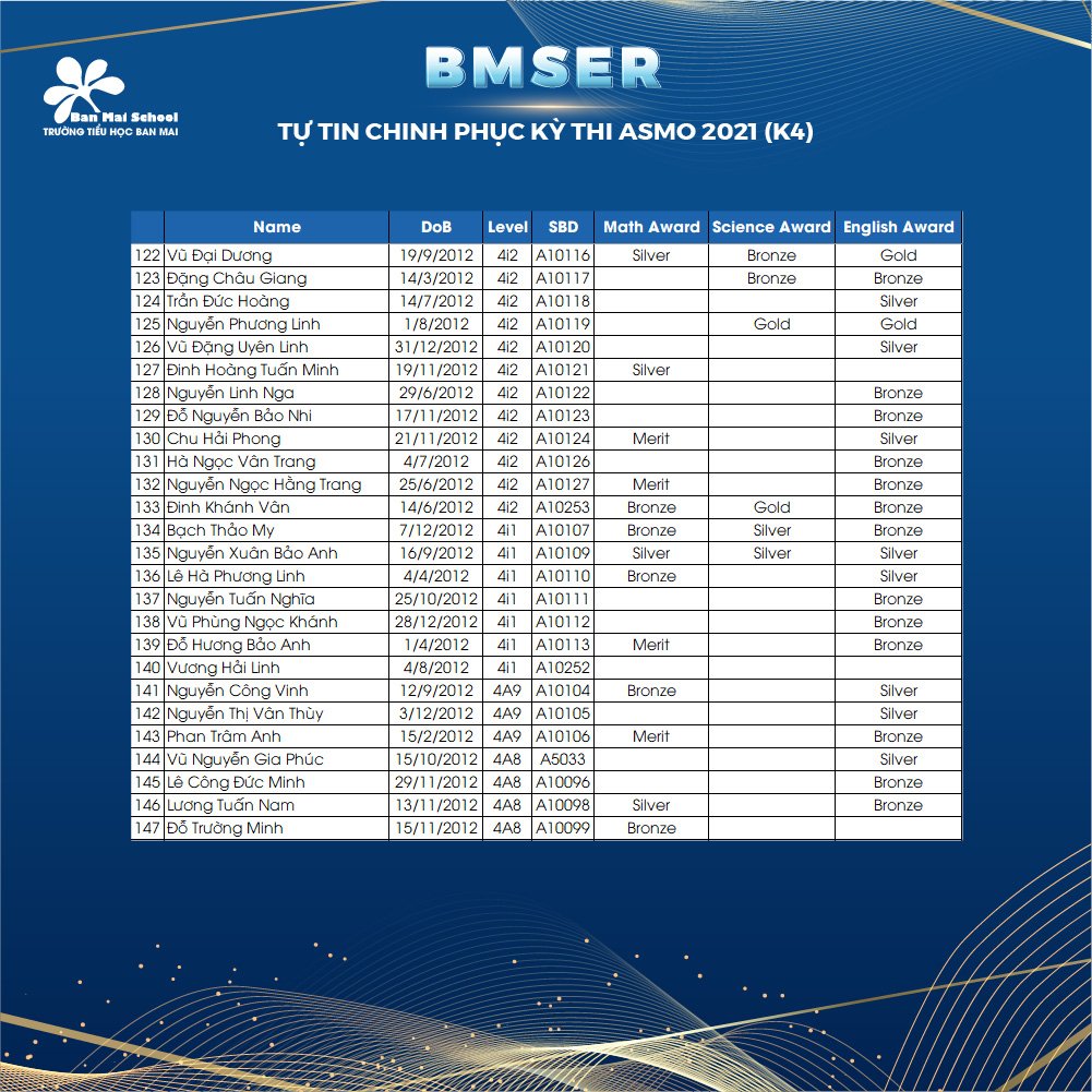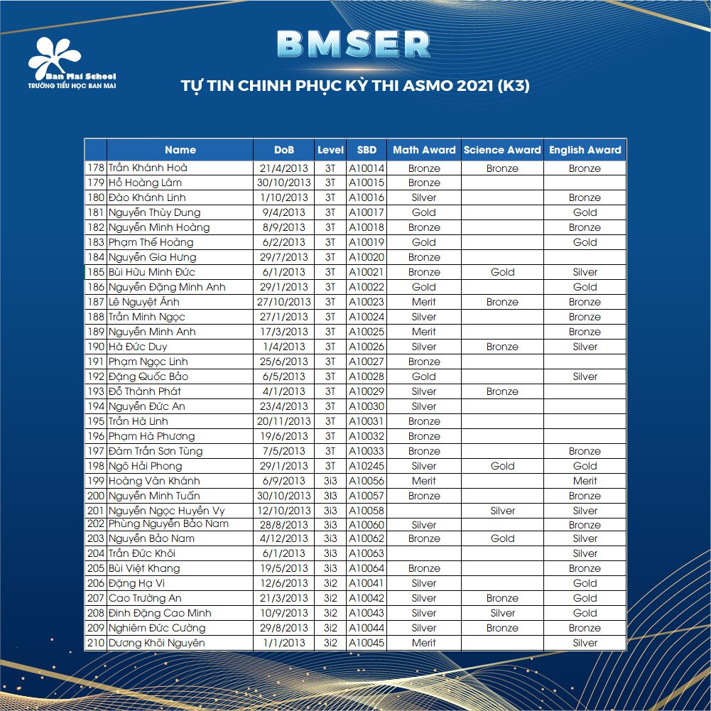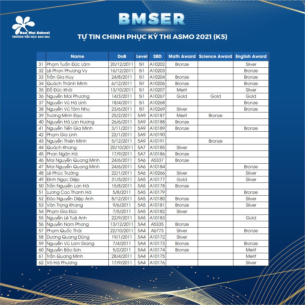 569 là tổng số giải thưởng mà BMSers đã giành được tại vòng 1 kỳ thi đánh giá năng lực Khoa học, Toán và Tiếng Anh toàn cầu ASMO.